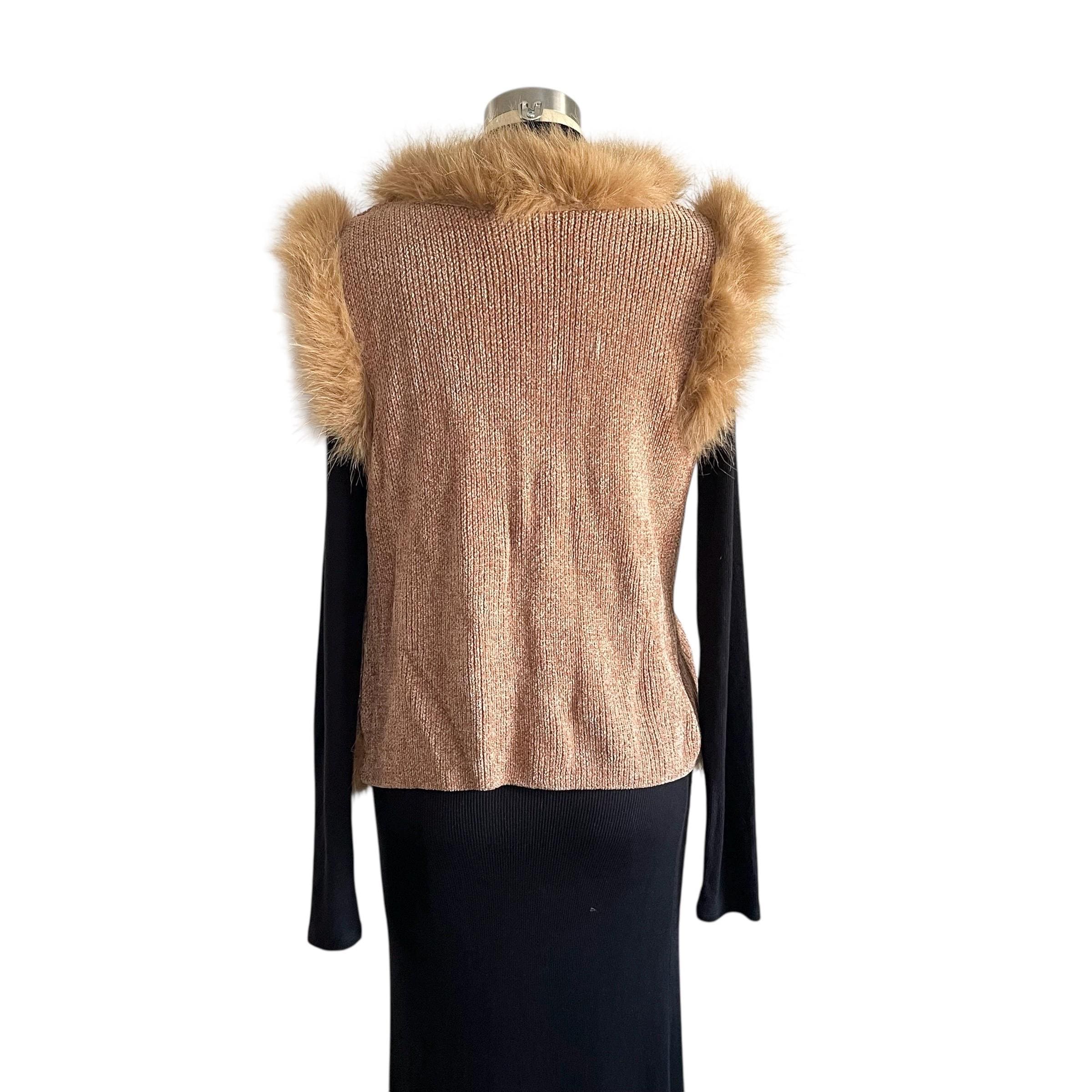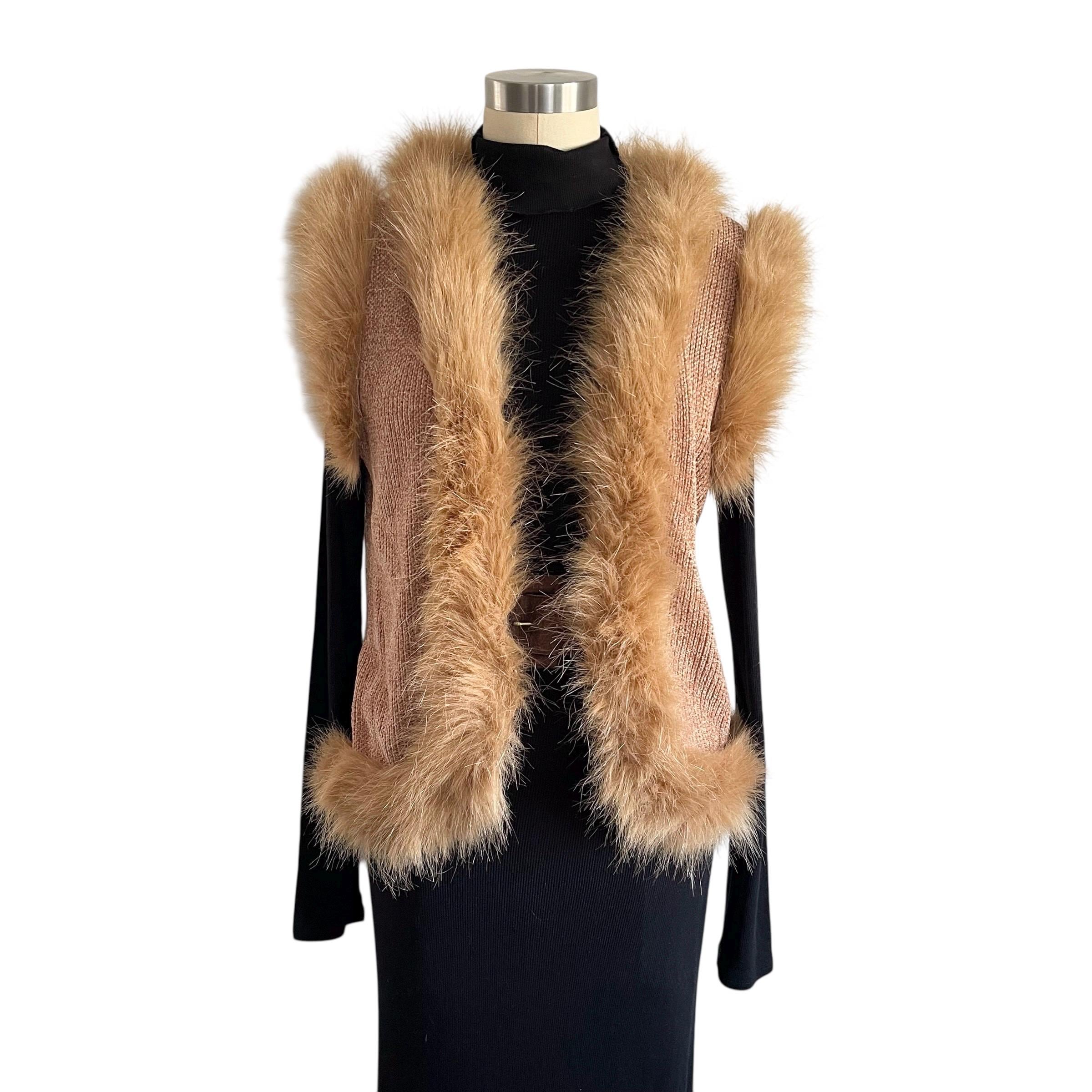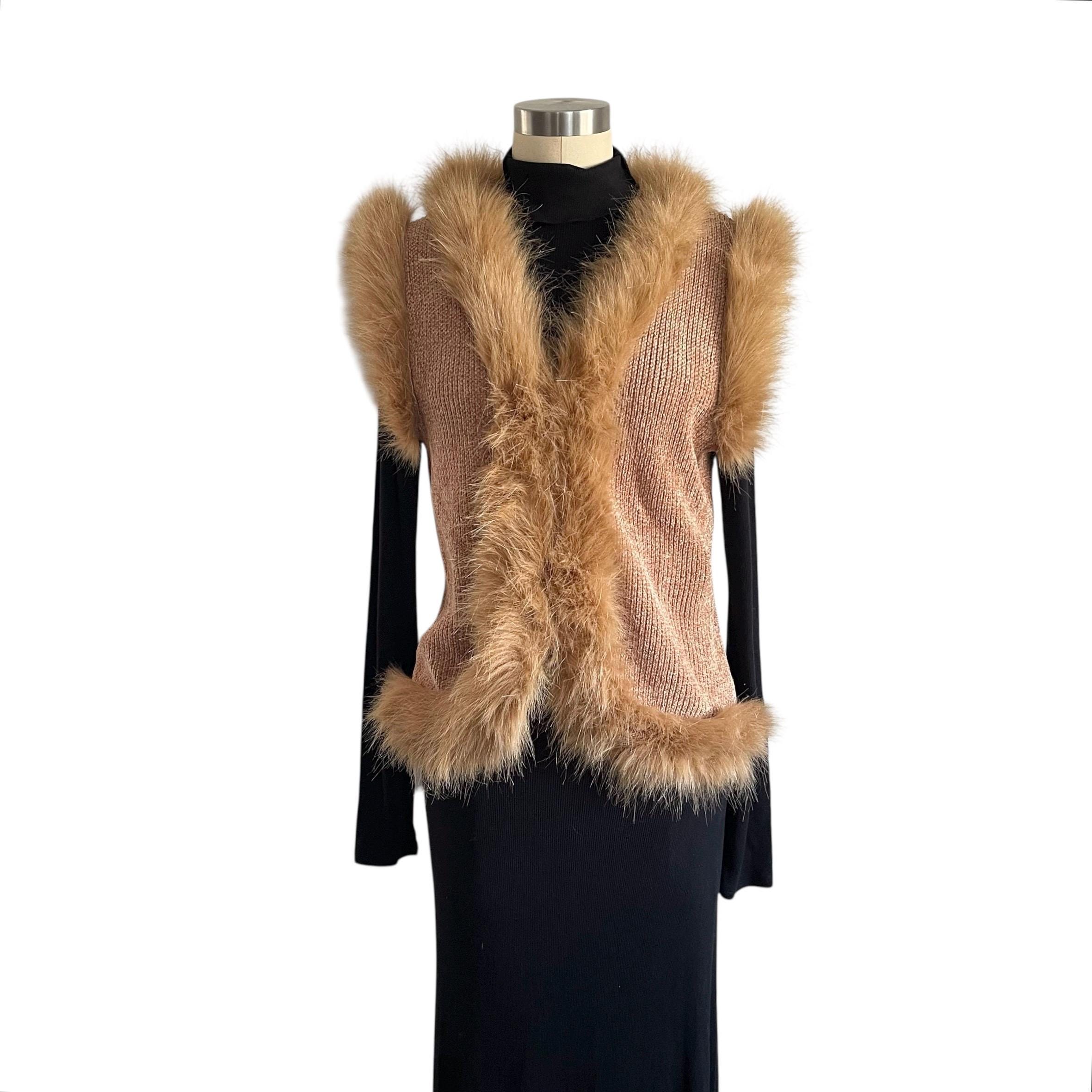 Vintage Lisa International Tan Shimmer Fur Vest Cardigan: Knitted Fur Party Vest, Buttonless Vest, Cocktail Party Vest, 80s 90s Y2K
