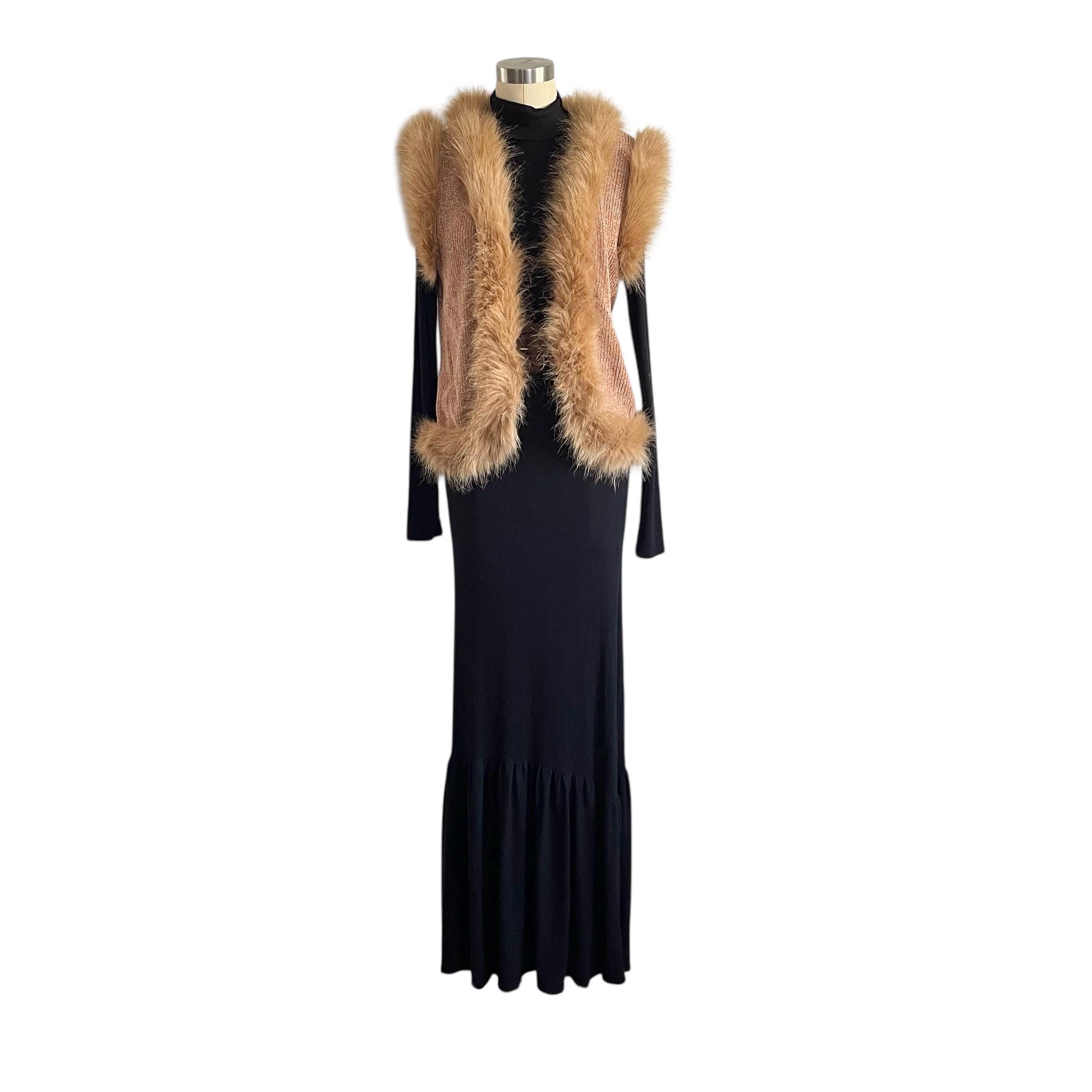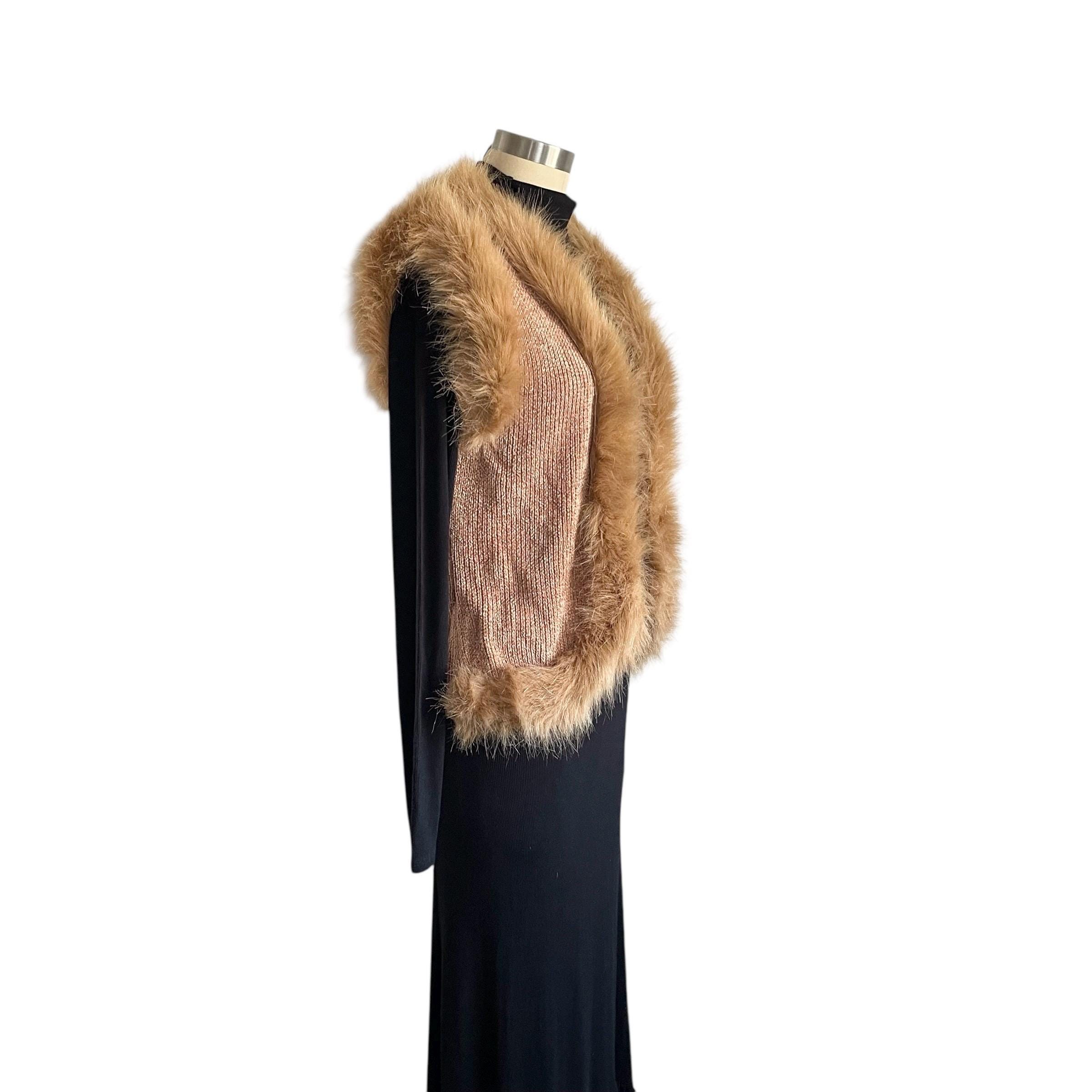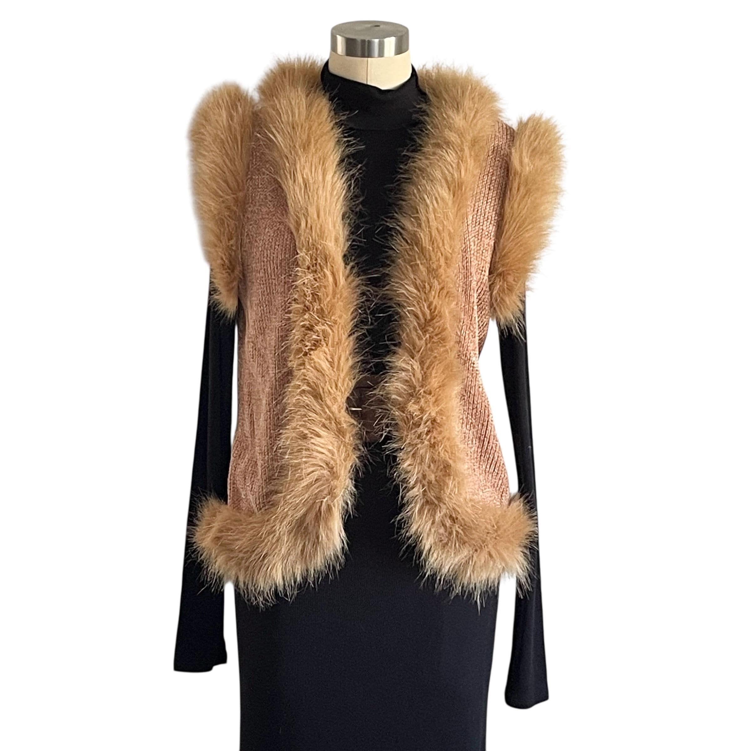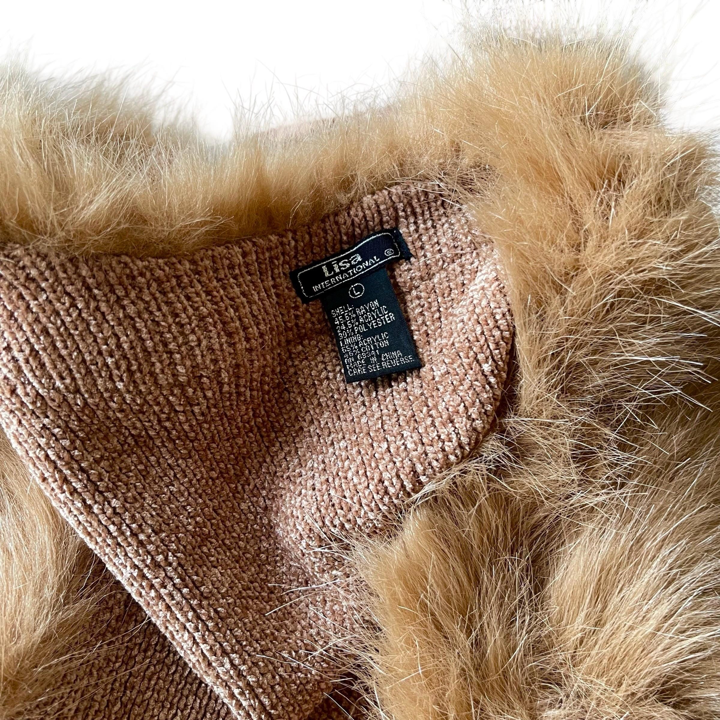 Vintage Lisa International Tan Shimmer Fur Vest Cardigan: Knitted Fur Party Vest, Buttonless Vest, Cocktail Party Vest, 80s 90s Y2K