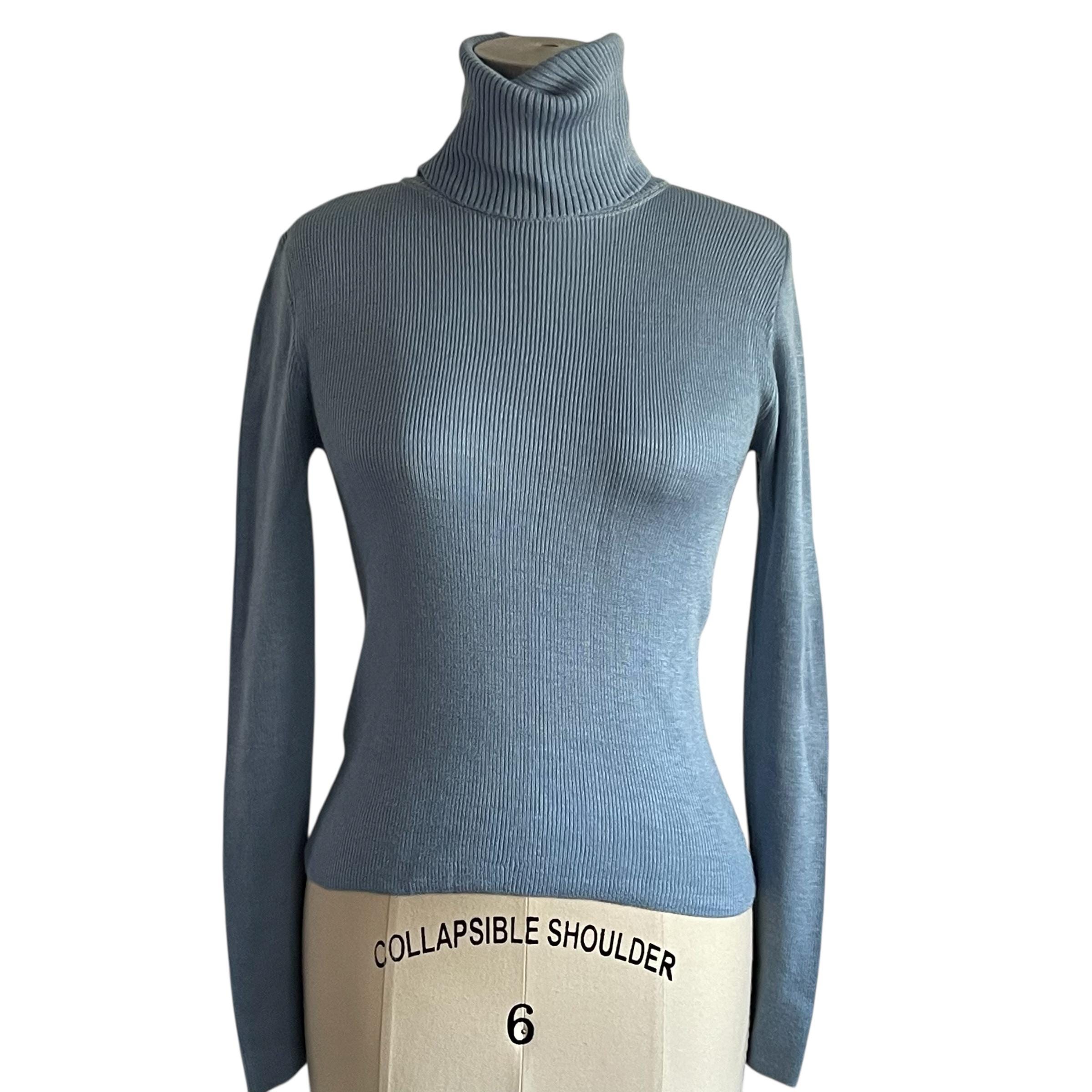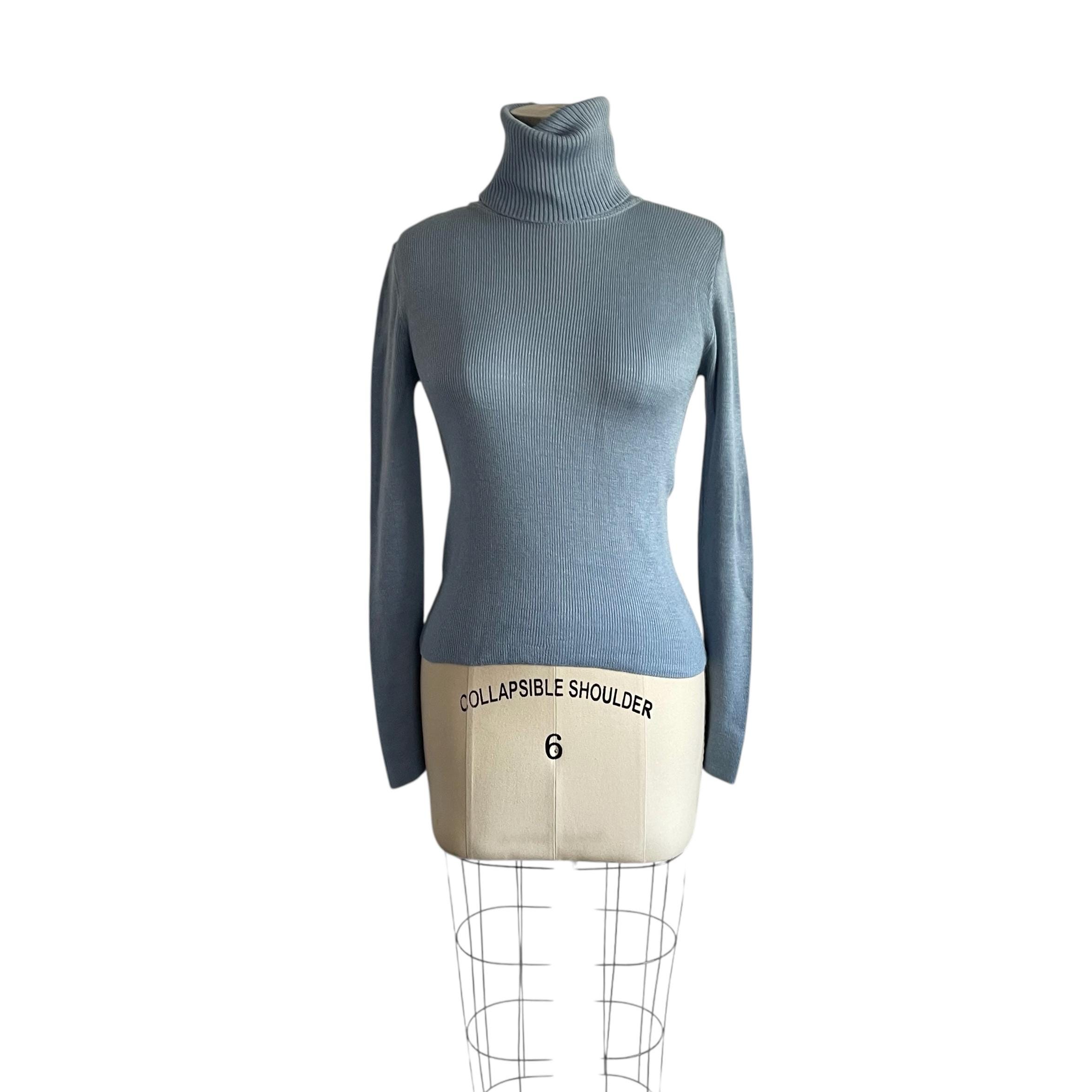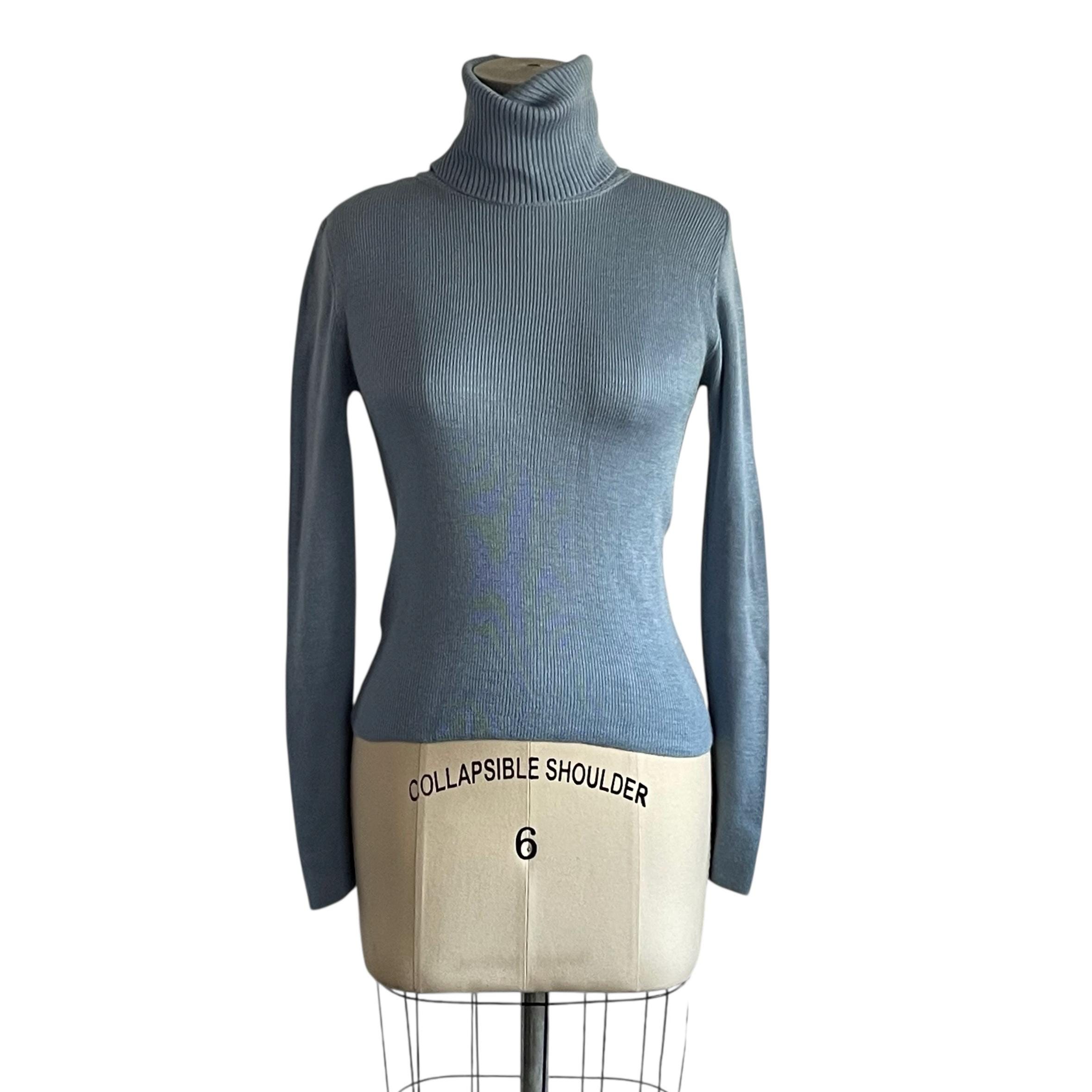 Vintage El Mor Baby Blue Ribbed Turtleneck Top: Casual Blue Sweater Blouse, Library Blouse, Autumn/Fall, Gilmore Girls Blouse, 80s 90s Y2K