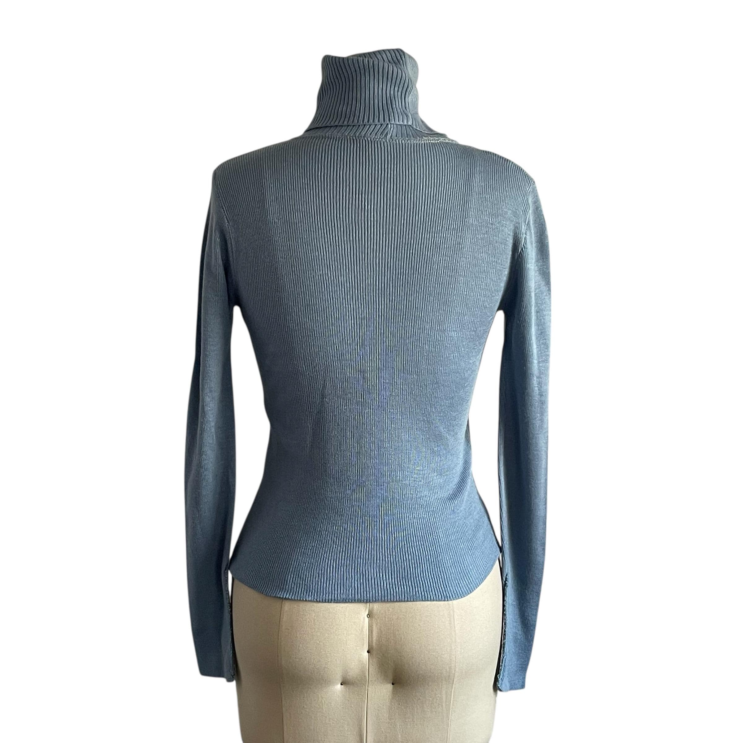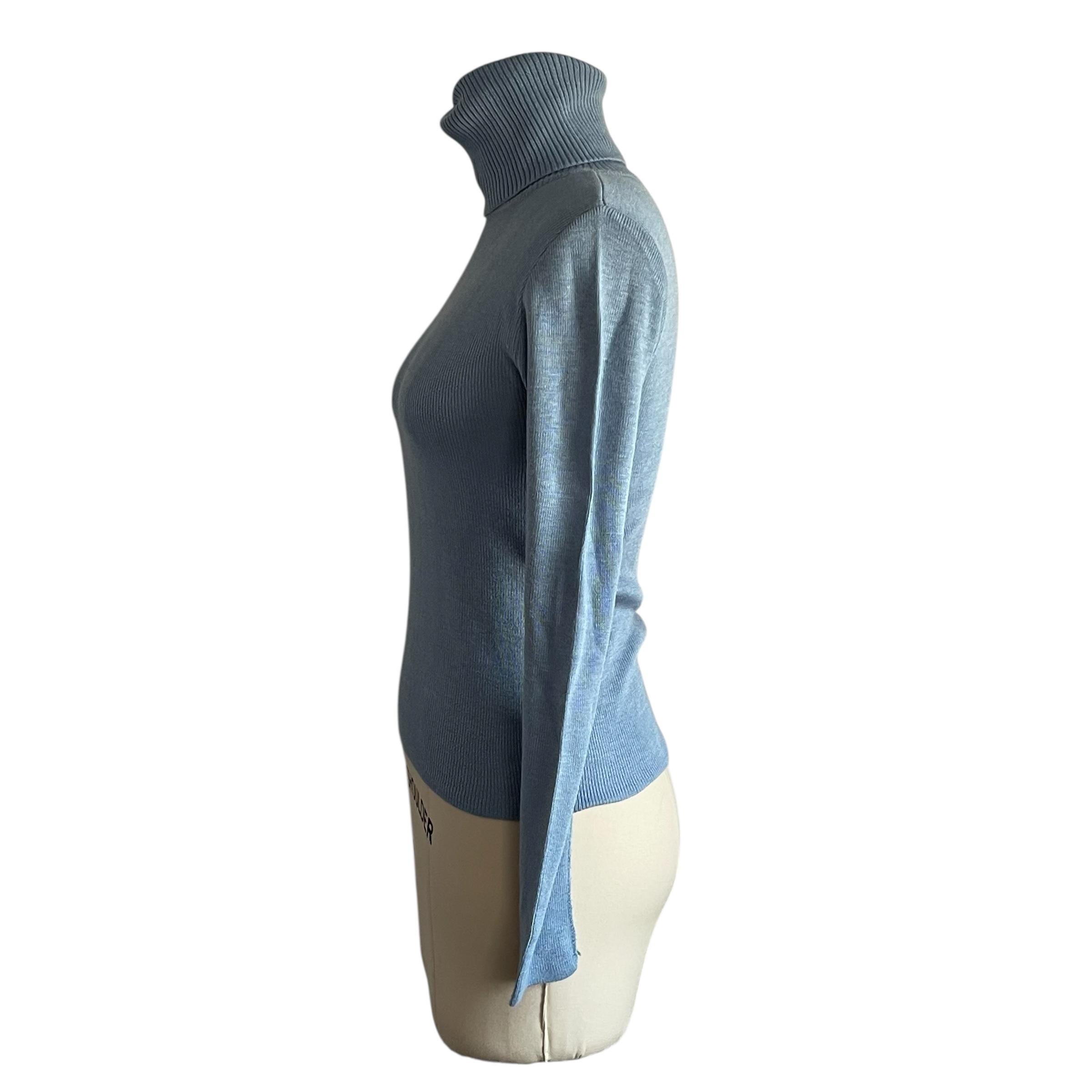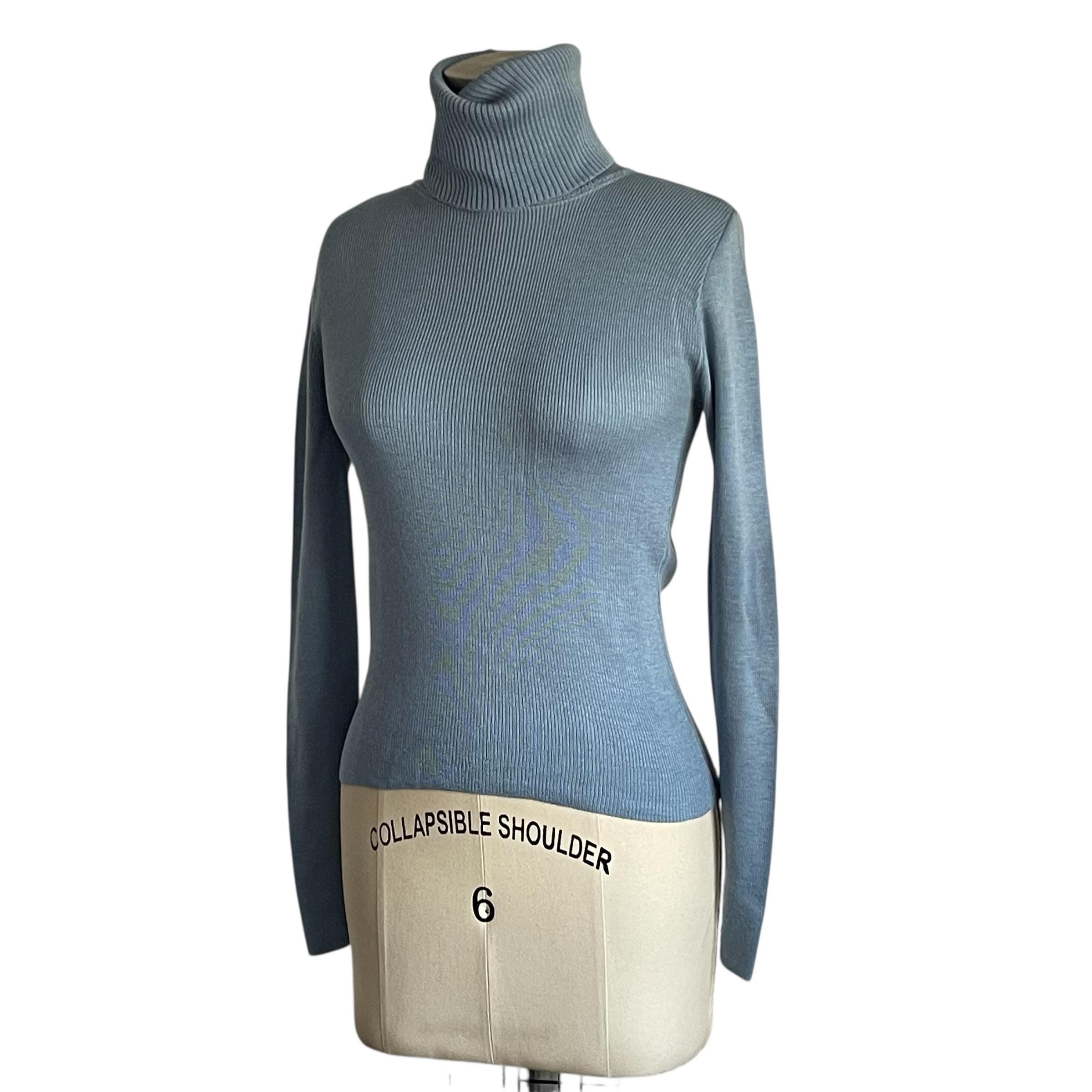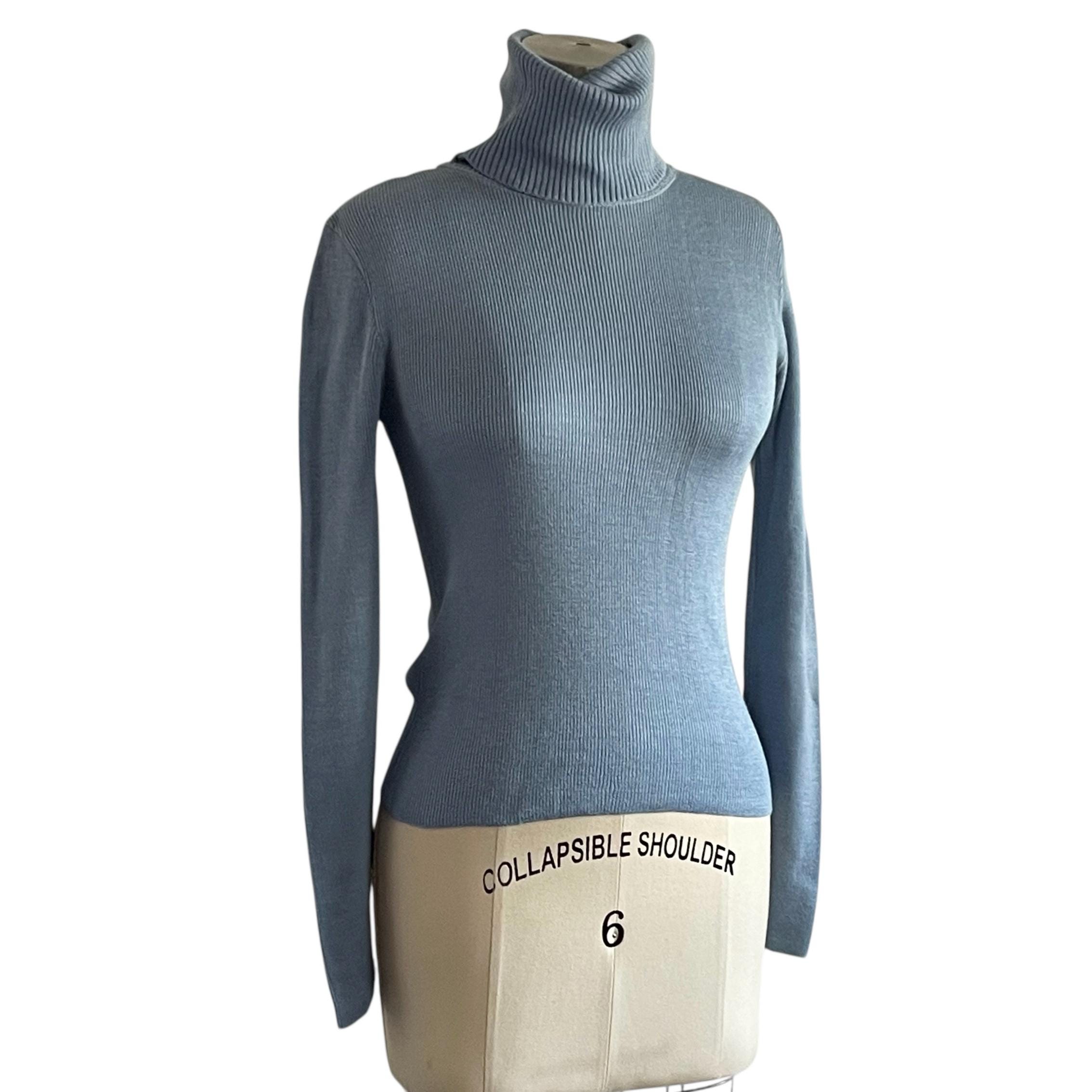 Vintage El Mor Baby Blue Ribbed Turtleneck Top: Casual Blue Sweater Blouse, Library Blouse, Autumn/Fall, Gilmore Girls Blouse, 80s 90s Y2K