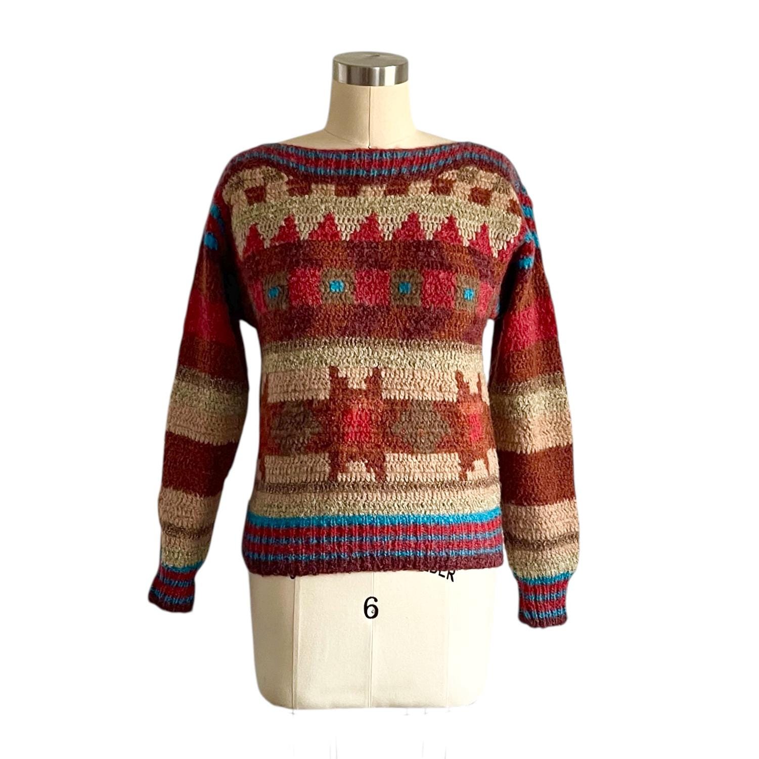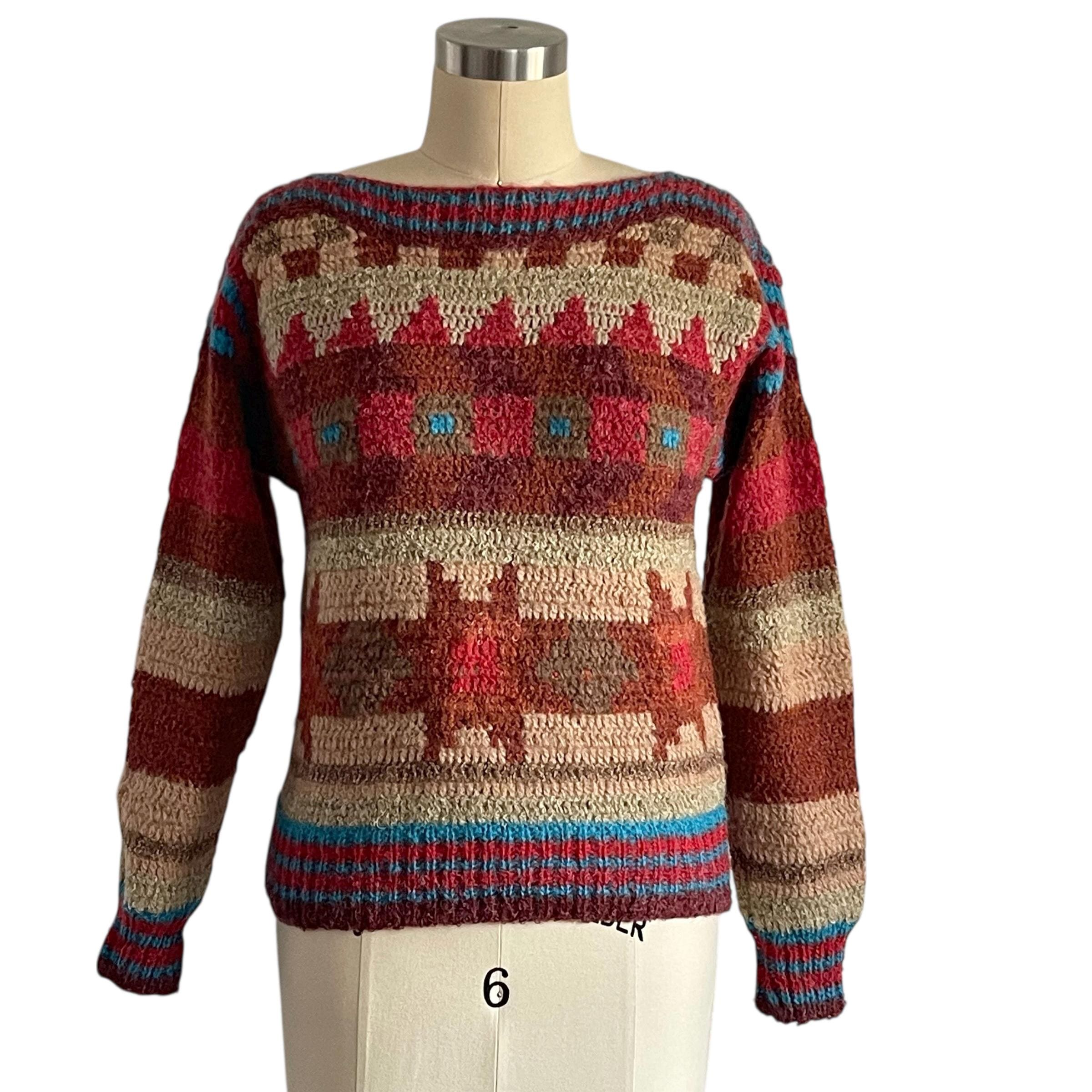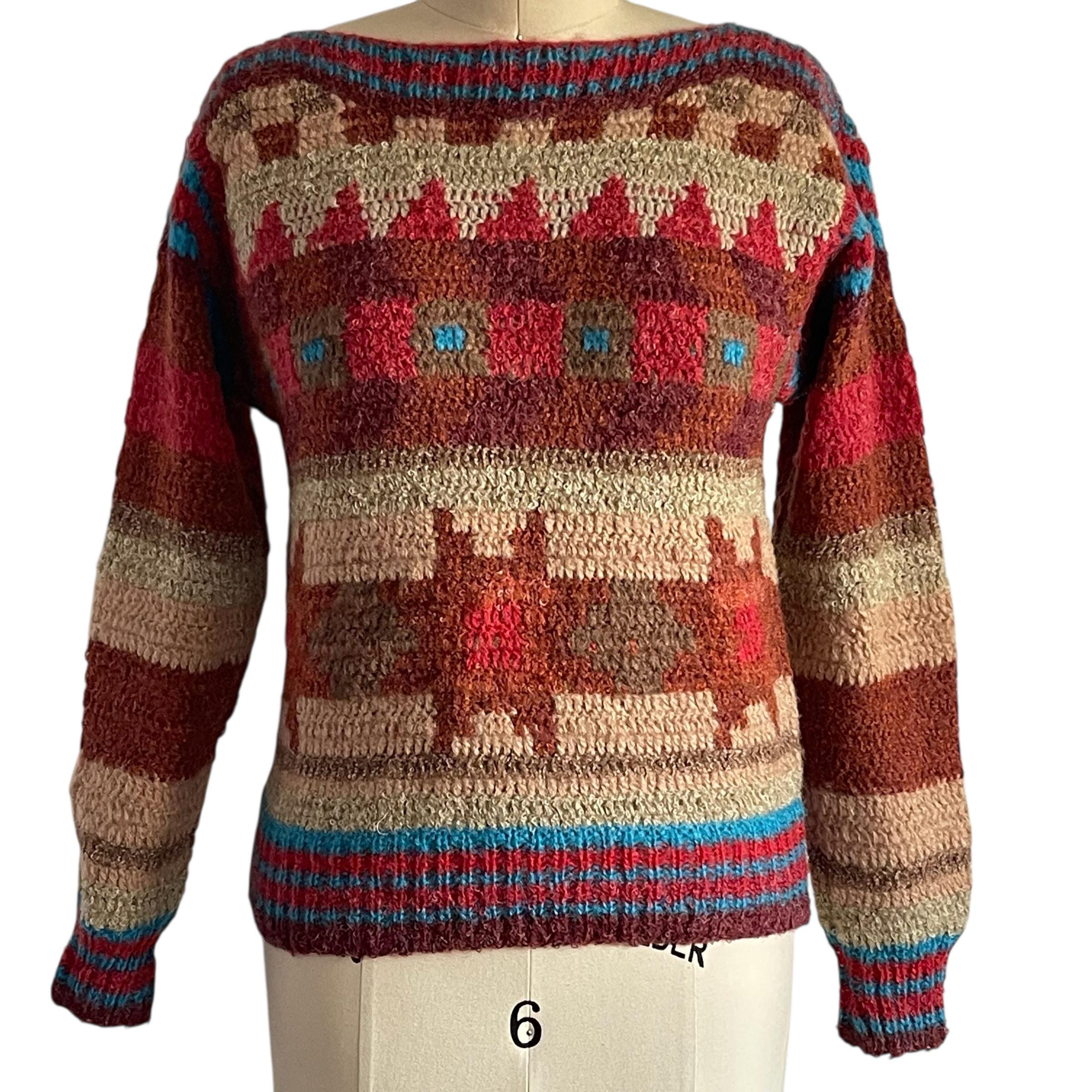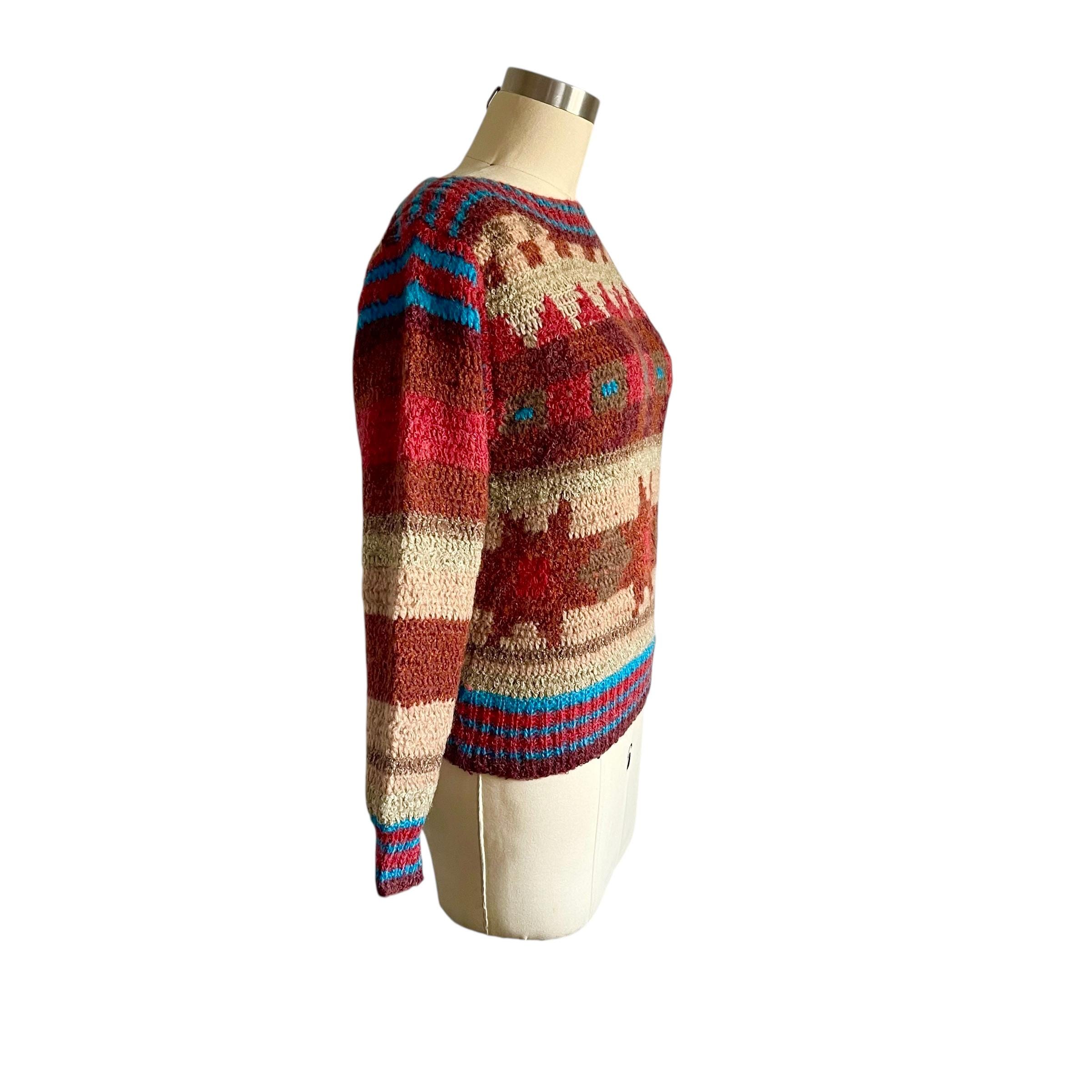 Vintage 2oans Knits Multicolor Southwestern Pullover Sweater: Mariea Kim Western Sweater, Grandmacore, Grunge Sweater, 80s 90s