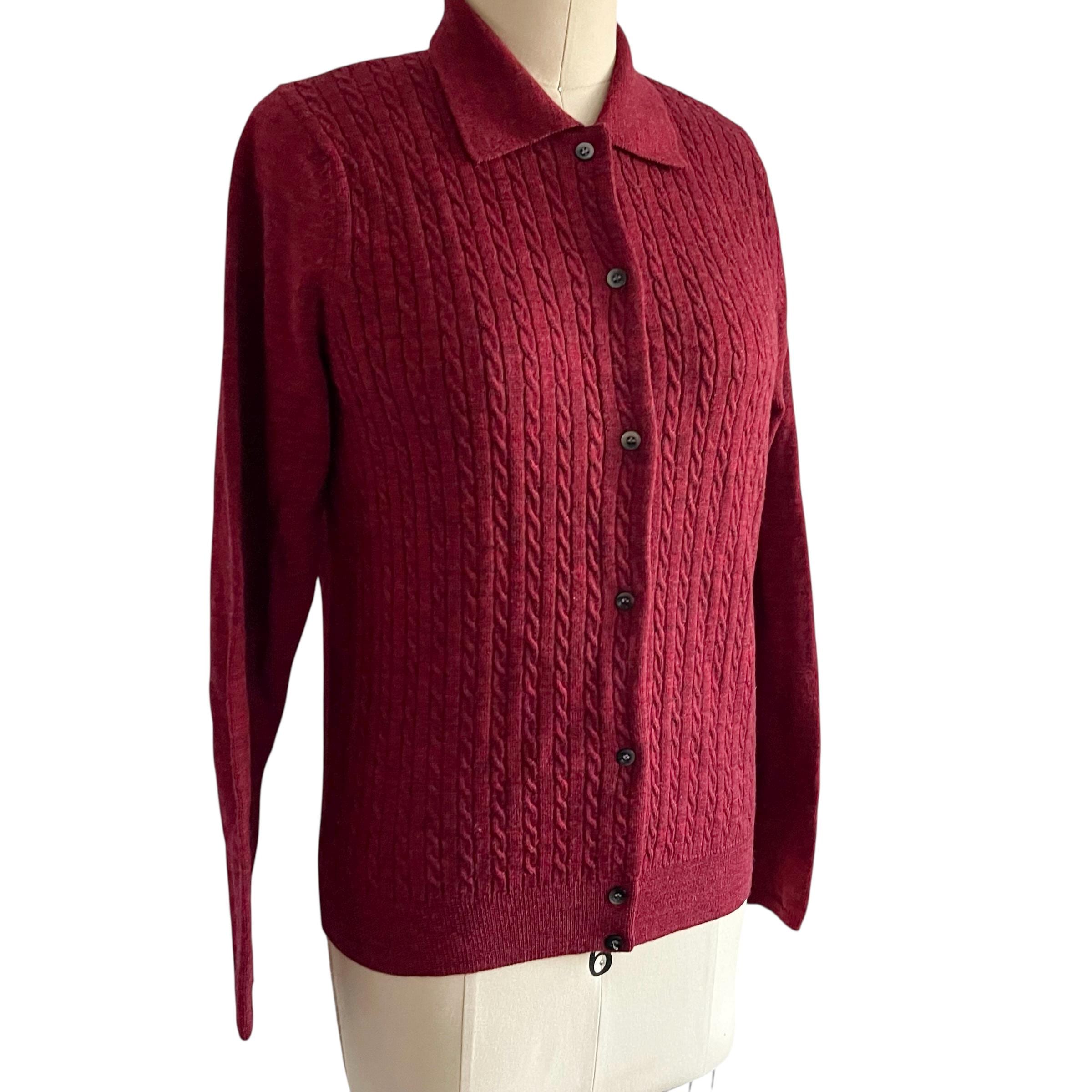 Vintage Brooks Brothers Crimson Knitted Cardigan Top: Red Knit Button-Up Top, Academia, Retro Student Sweater Top, 60s 70s 80s