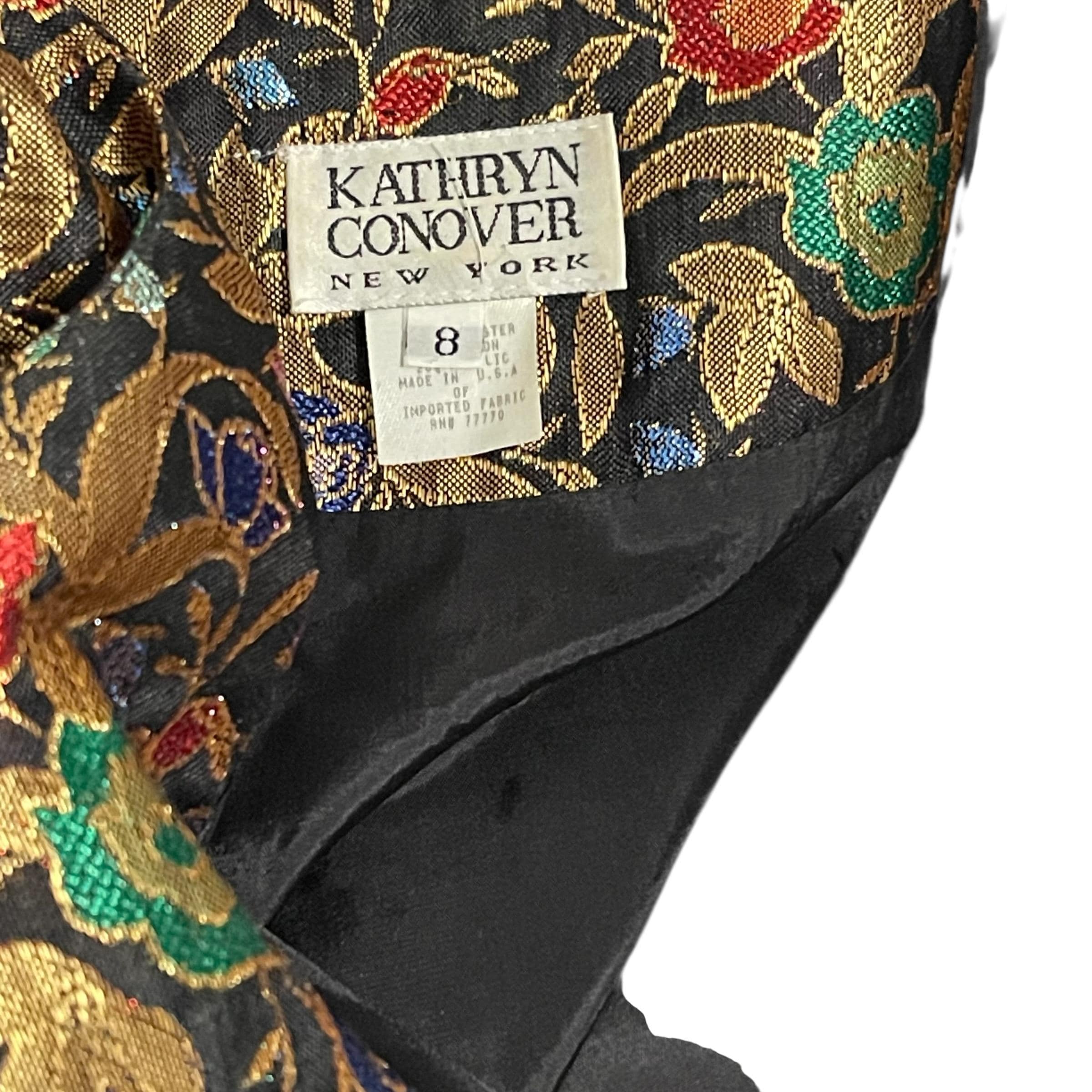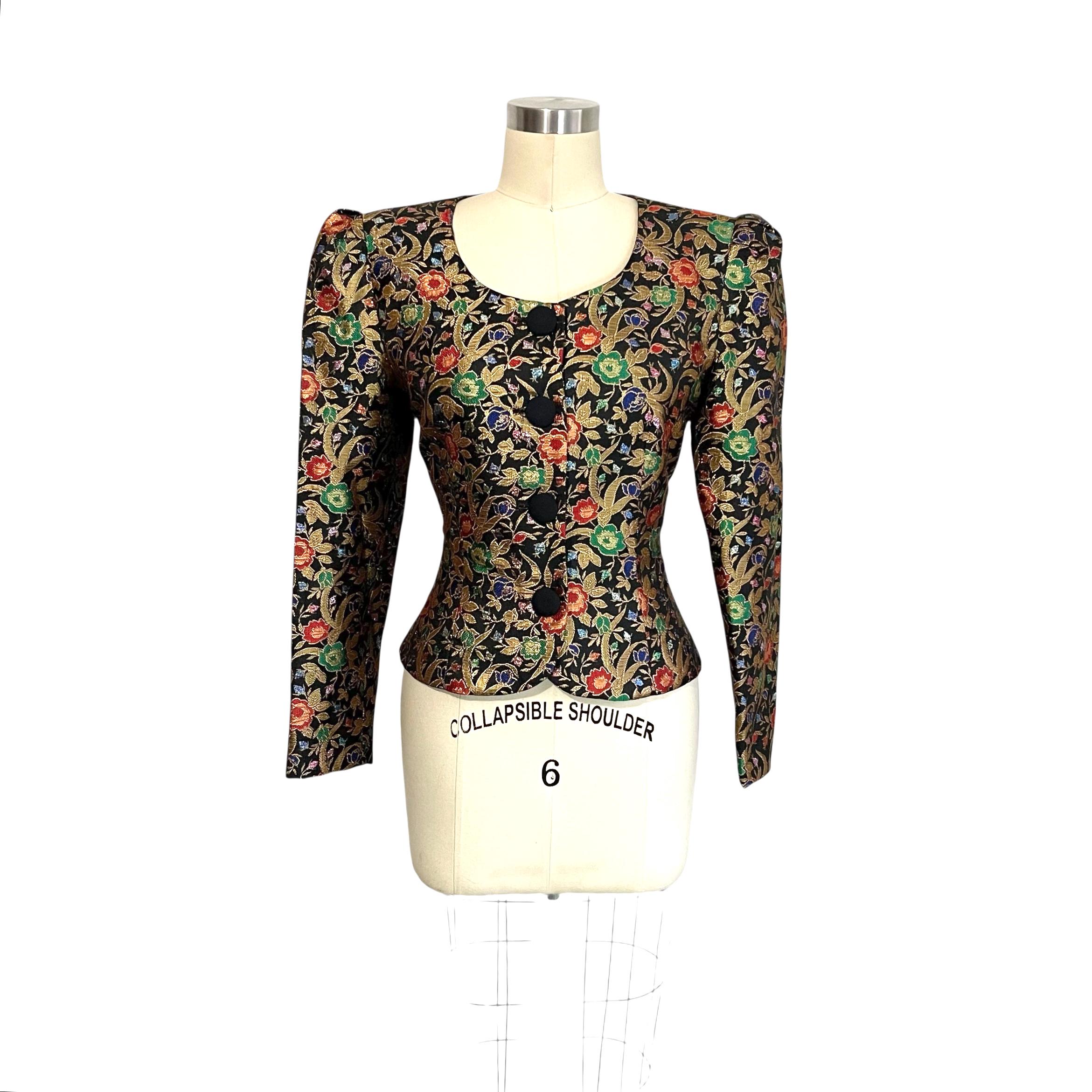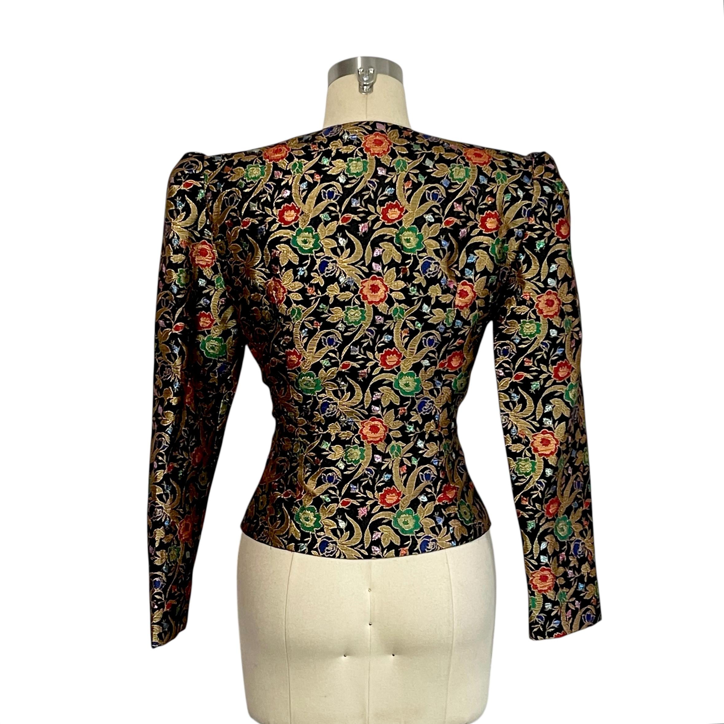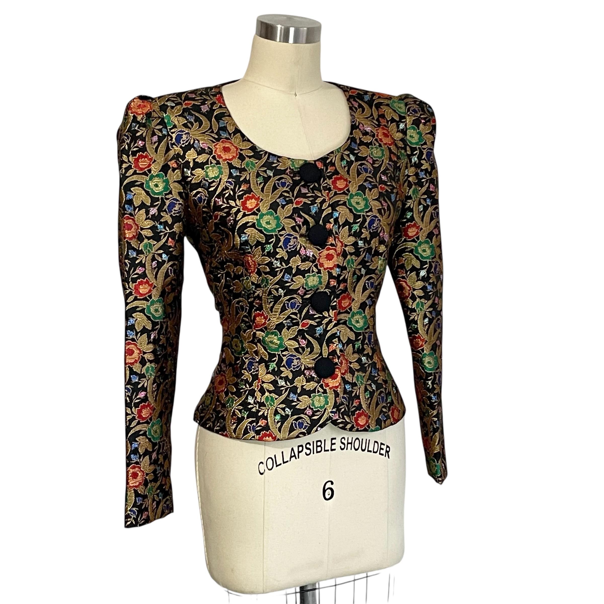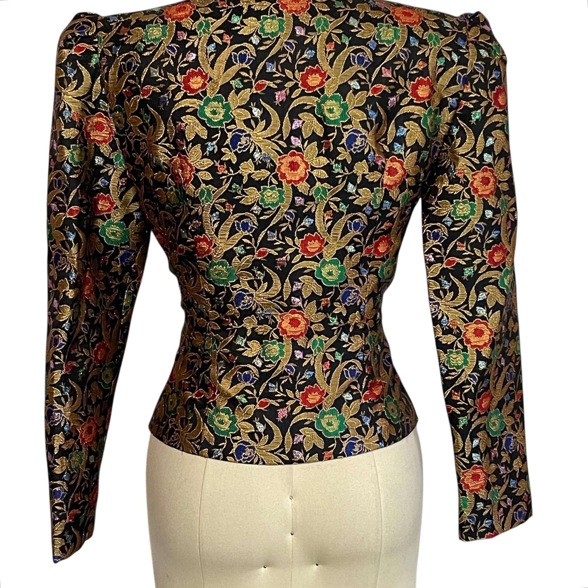 Vintage Kathyrn Conover Dark Whimsigoth Floral Button-Up Blouse: Dark Shimmery Floral Cocktail Top, Padded Shoulders, 60s 70s 80s.