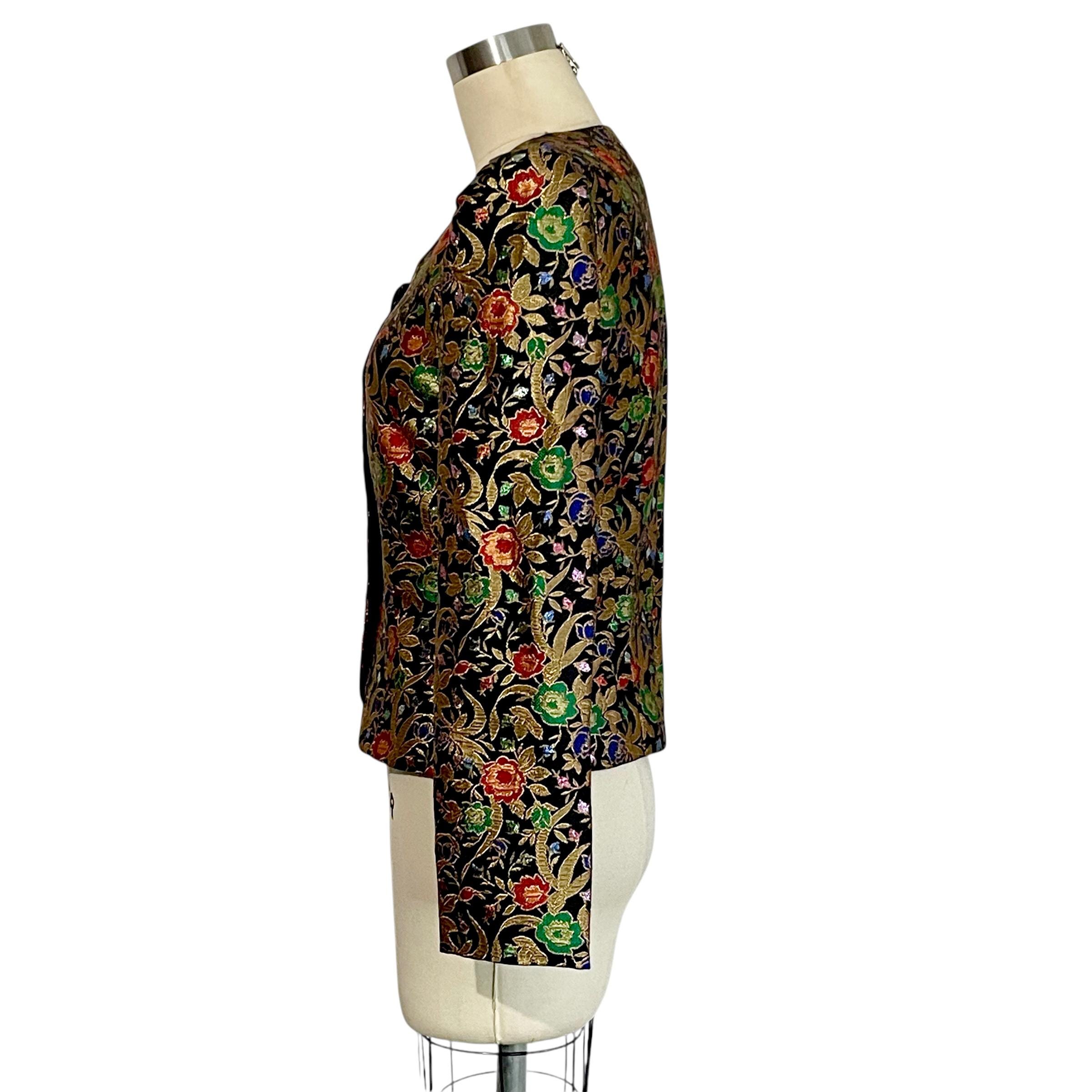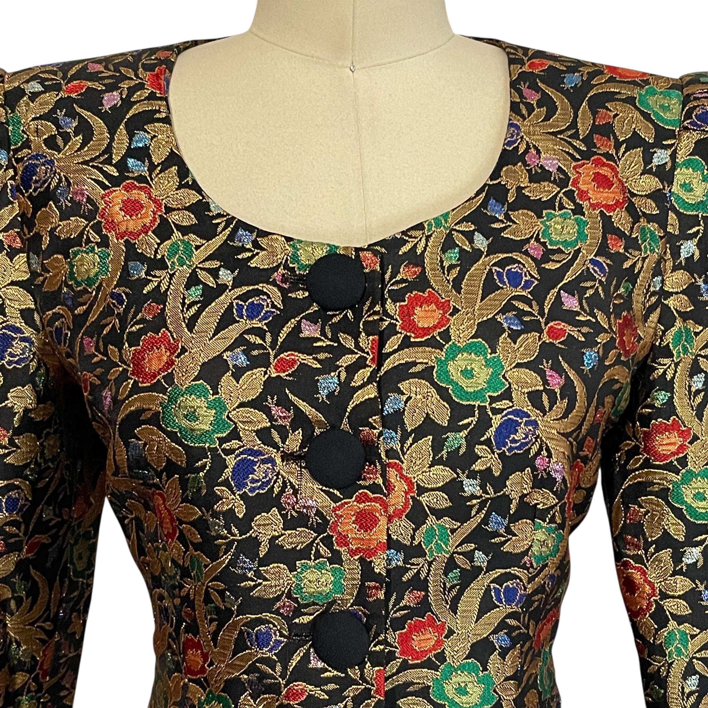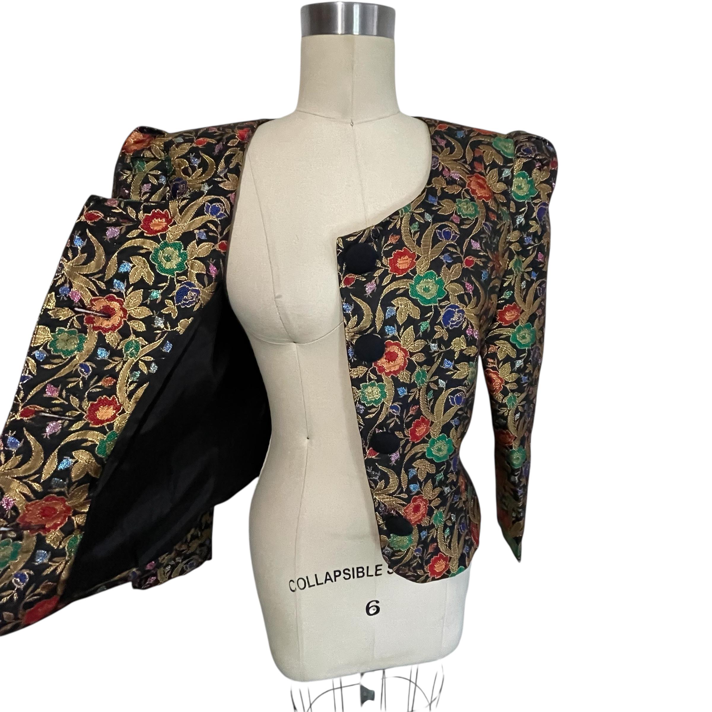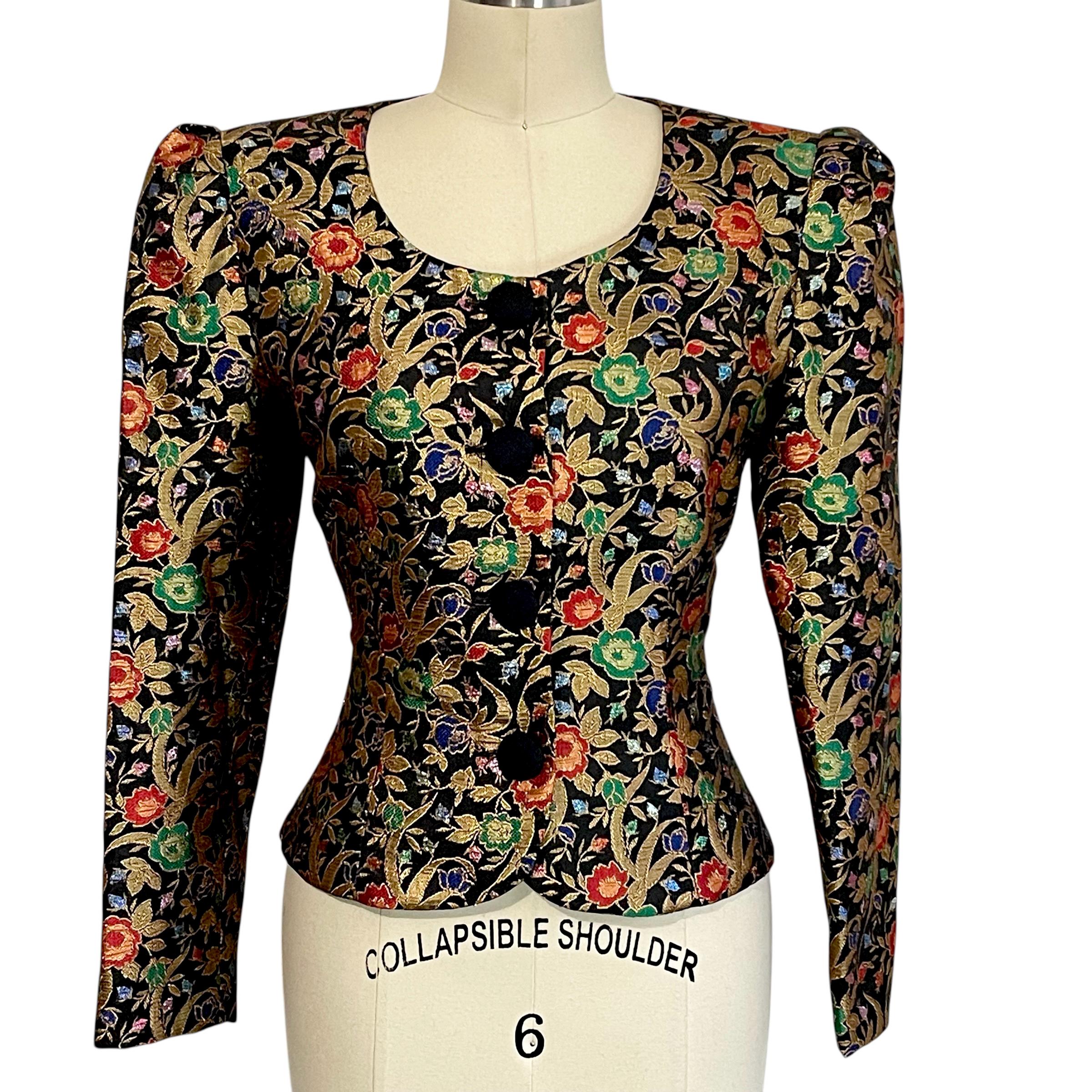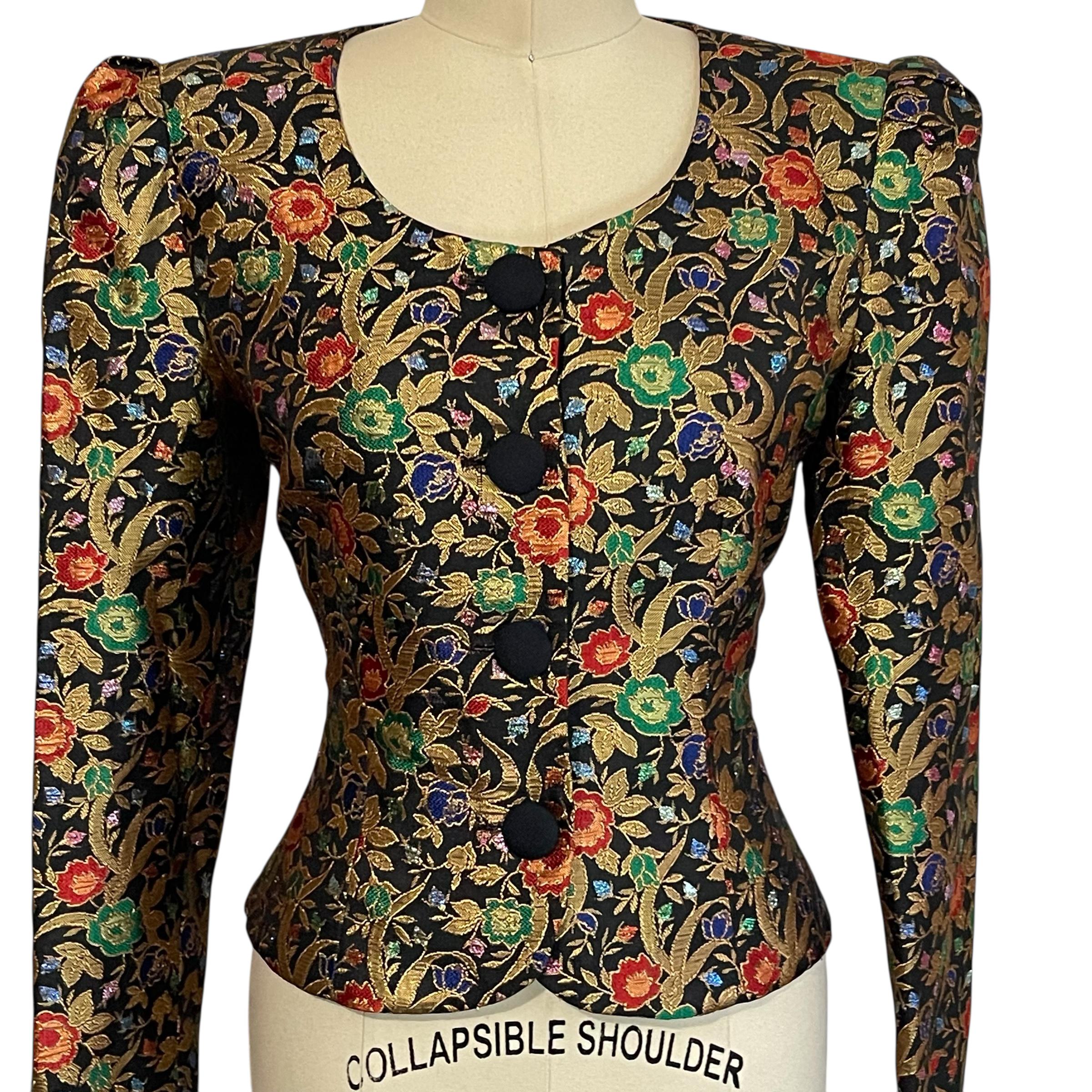 Vintage Kathyrn Conover Dark Whimsigoth Floral Button-Up Blouse: Dark Shimmery Floral Cocktail Top, Padded Shoulders, 60s 70s 80s.