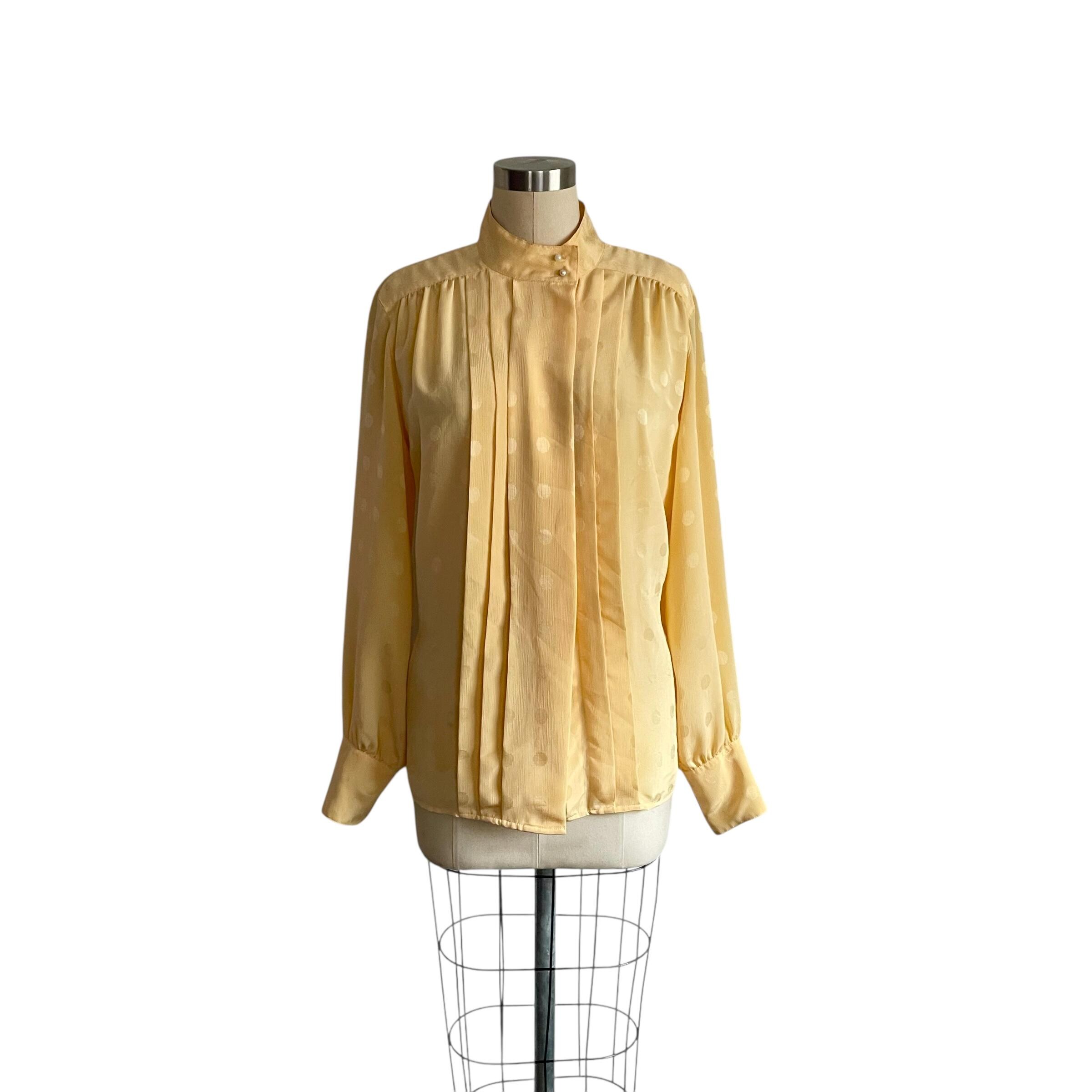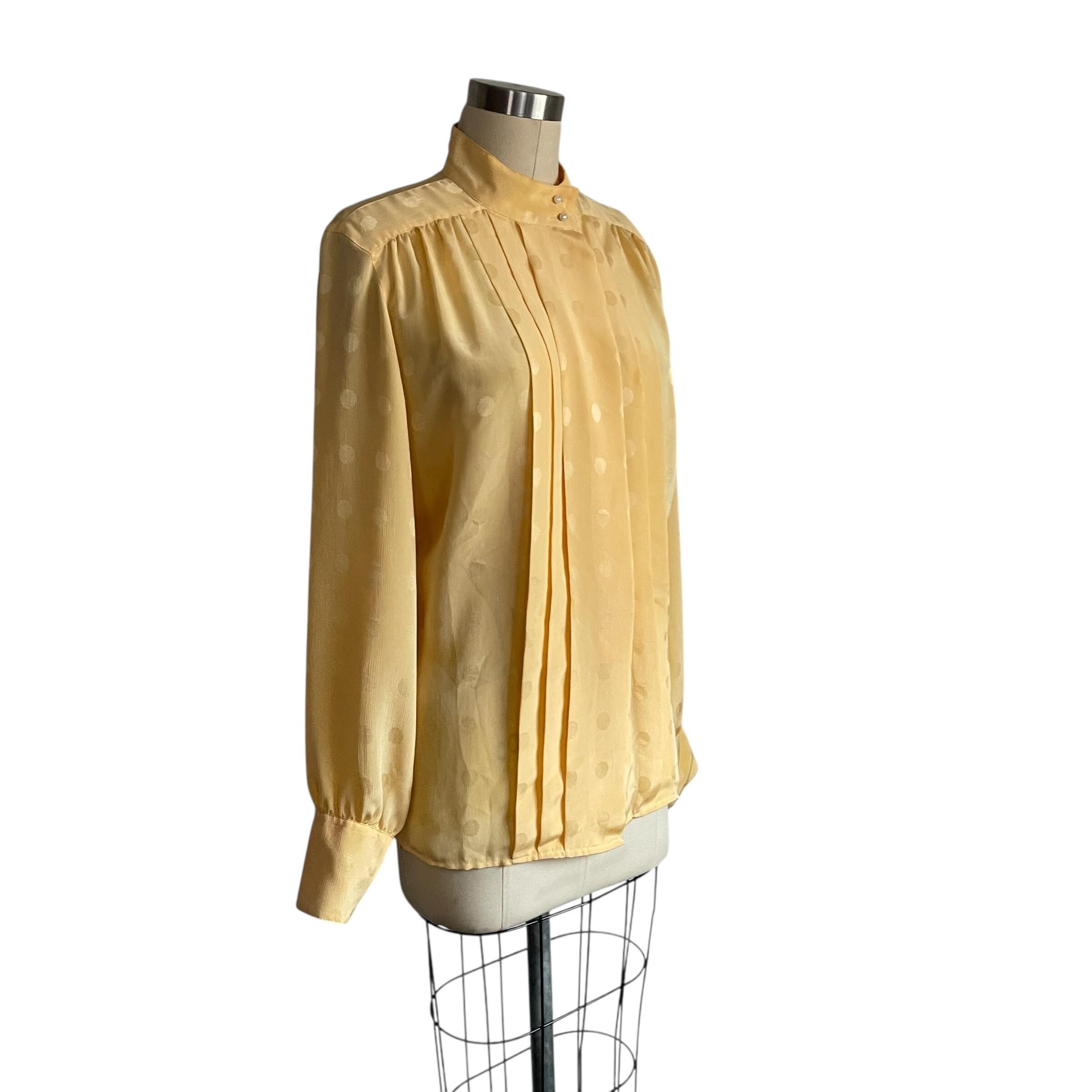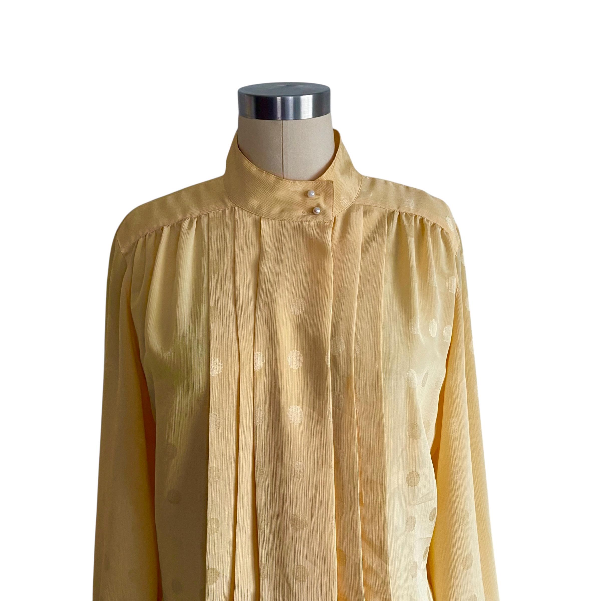 Vintage Maize Yellow Pleated Dress Blouse: Mock Neck, Hidden Buttons.