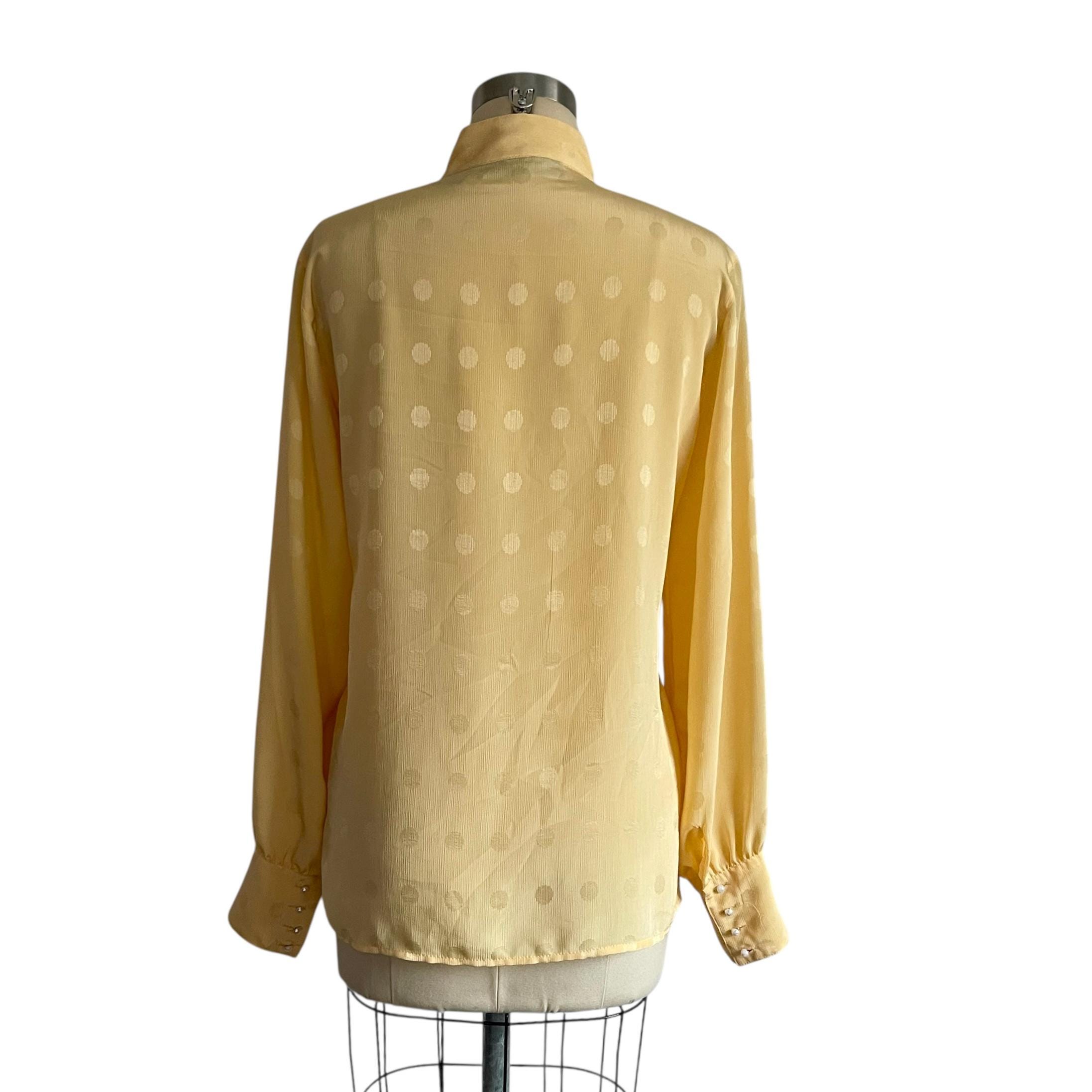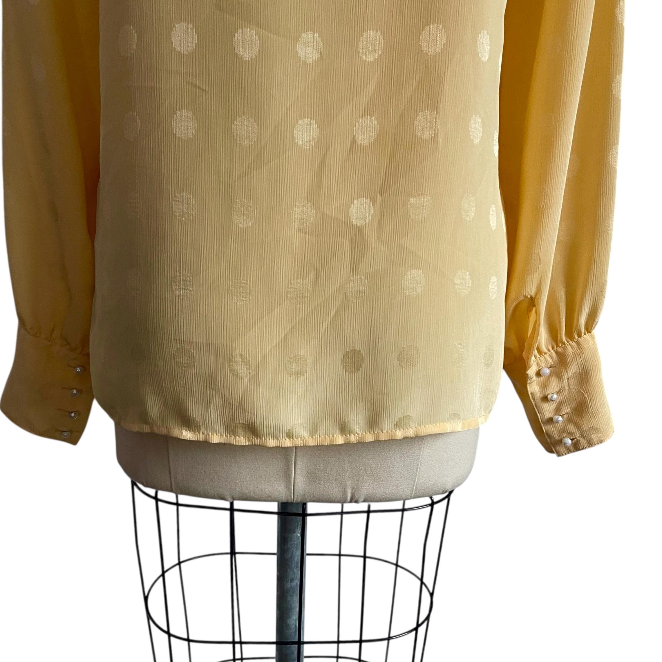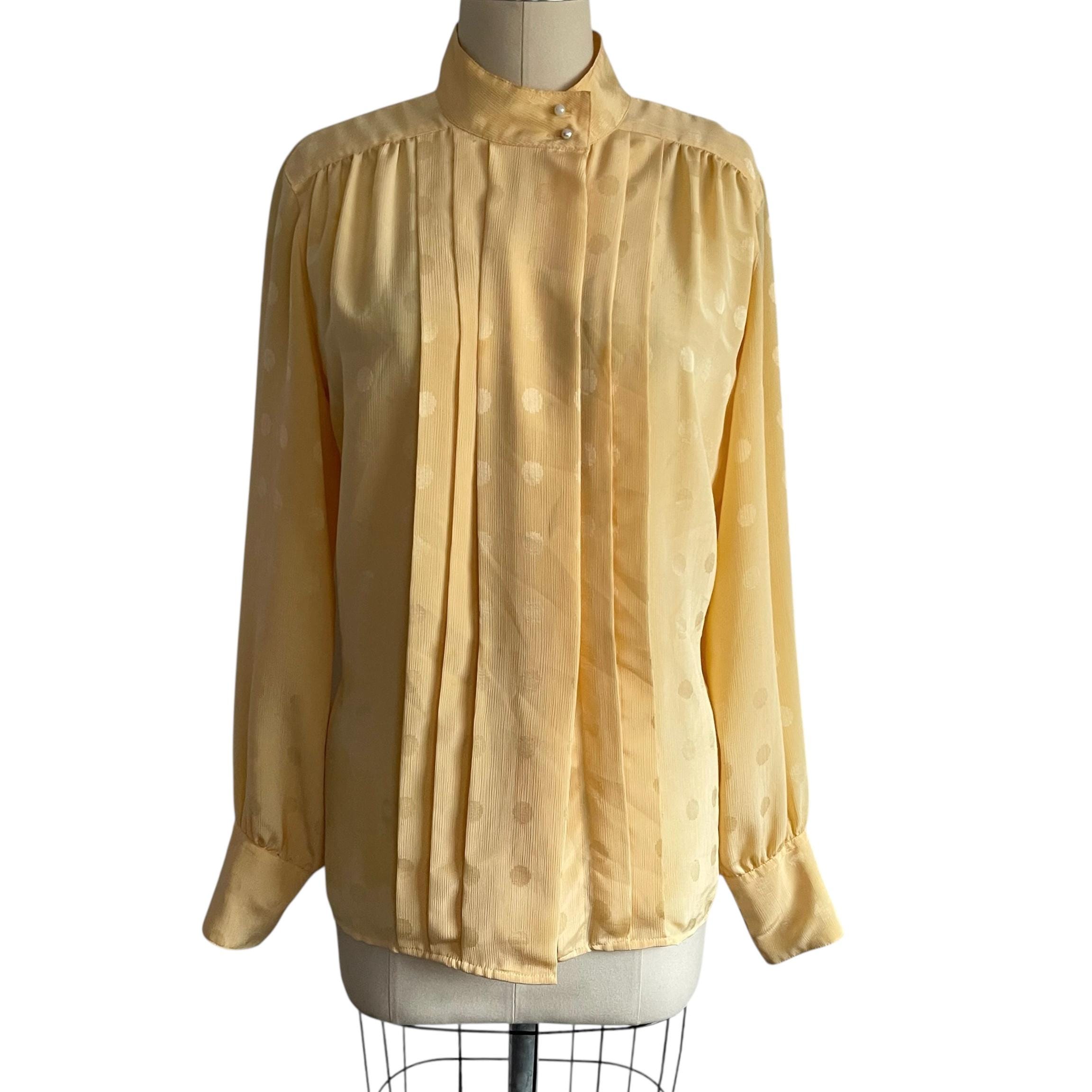 Vintage Maize Yellow Pleated Dress Blouse: Mock Neck, Hidden Buttons.