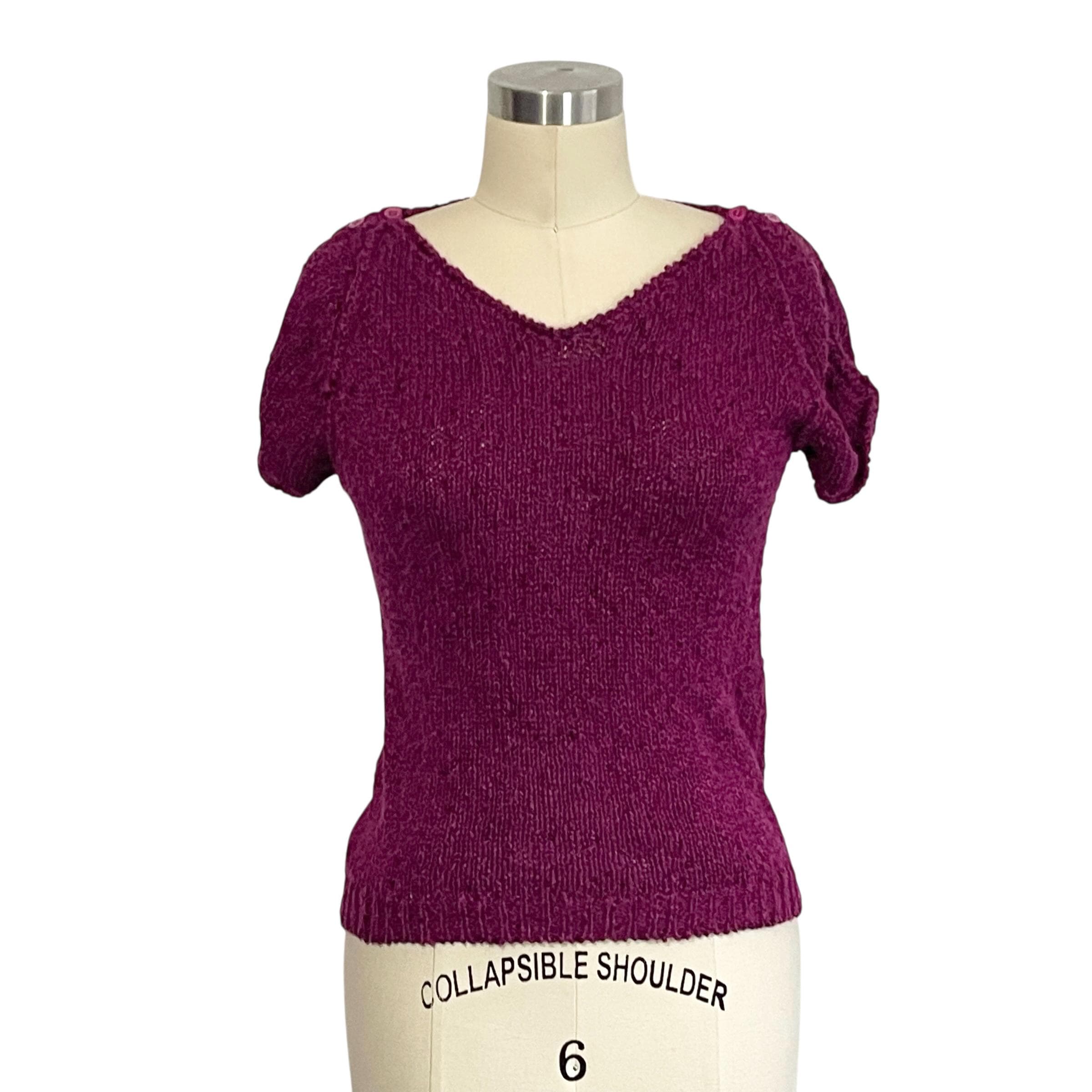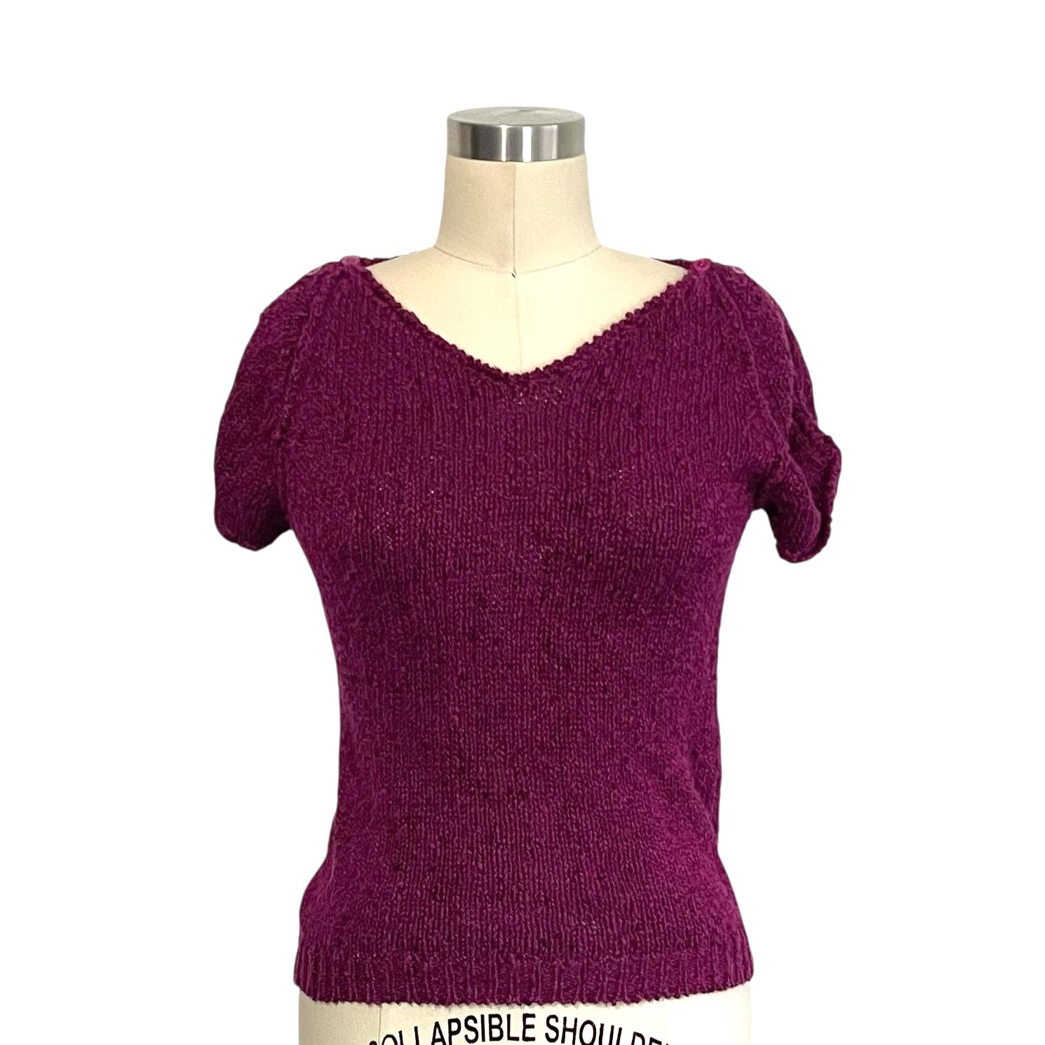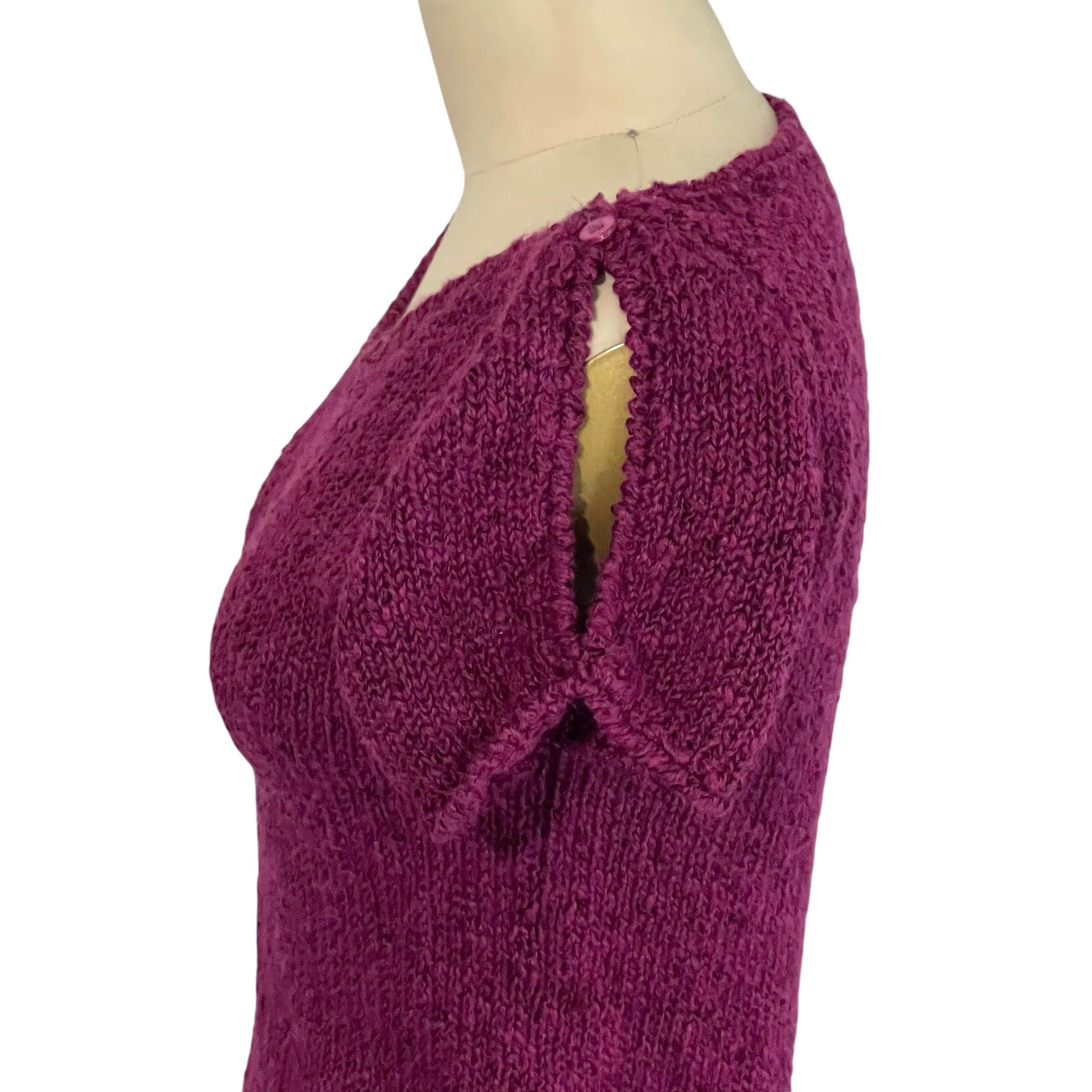 Vintage Boysenberry Split Sleeve Knit Top: Button on Shoulders.