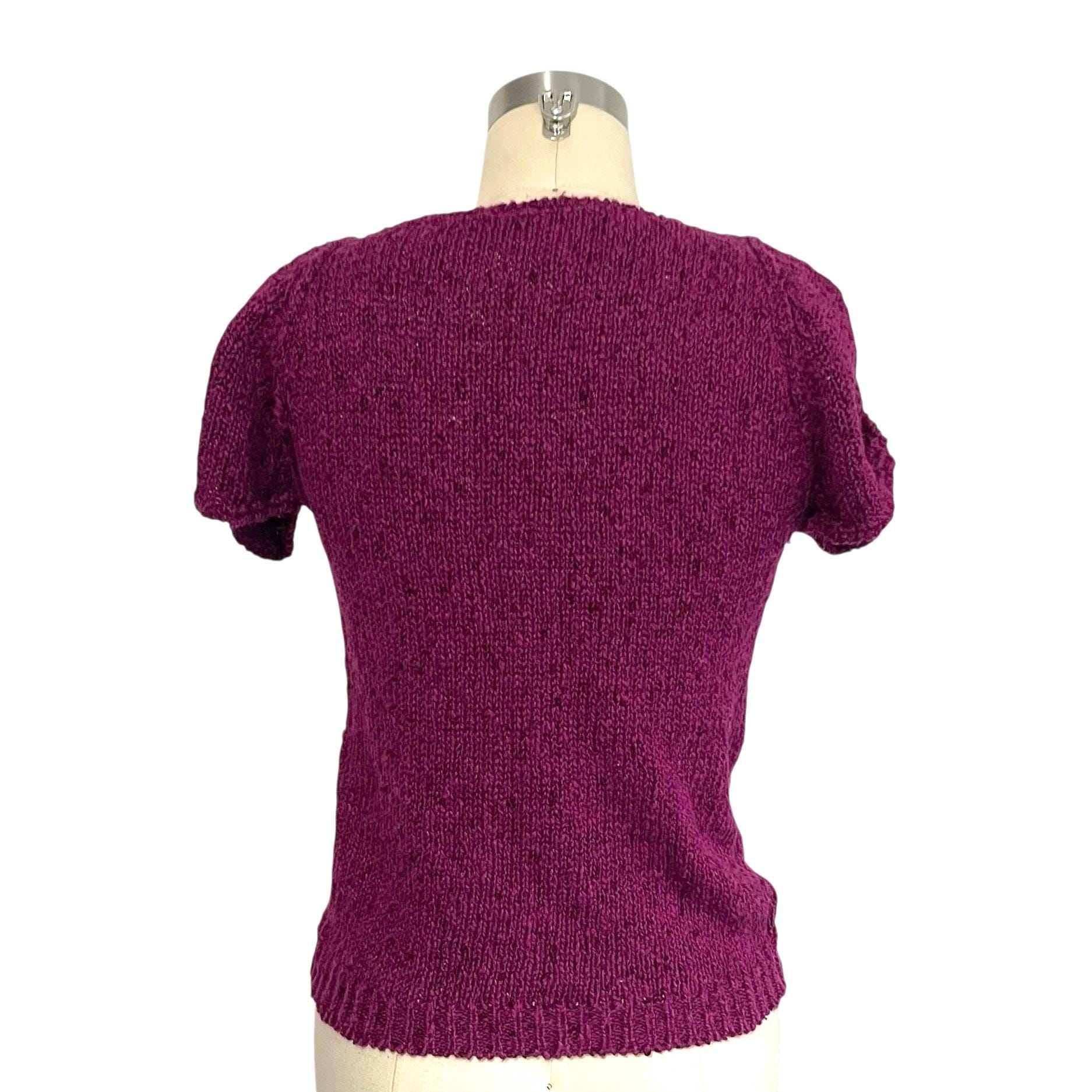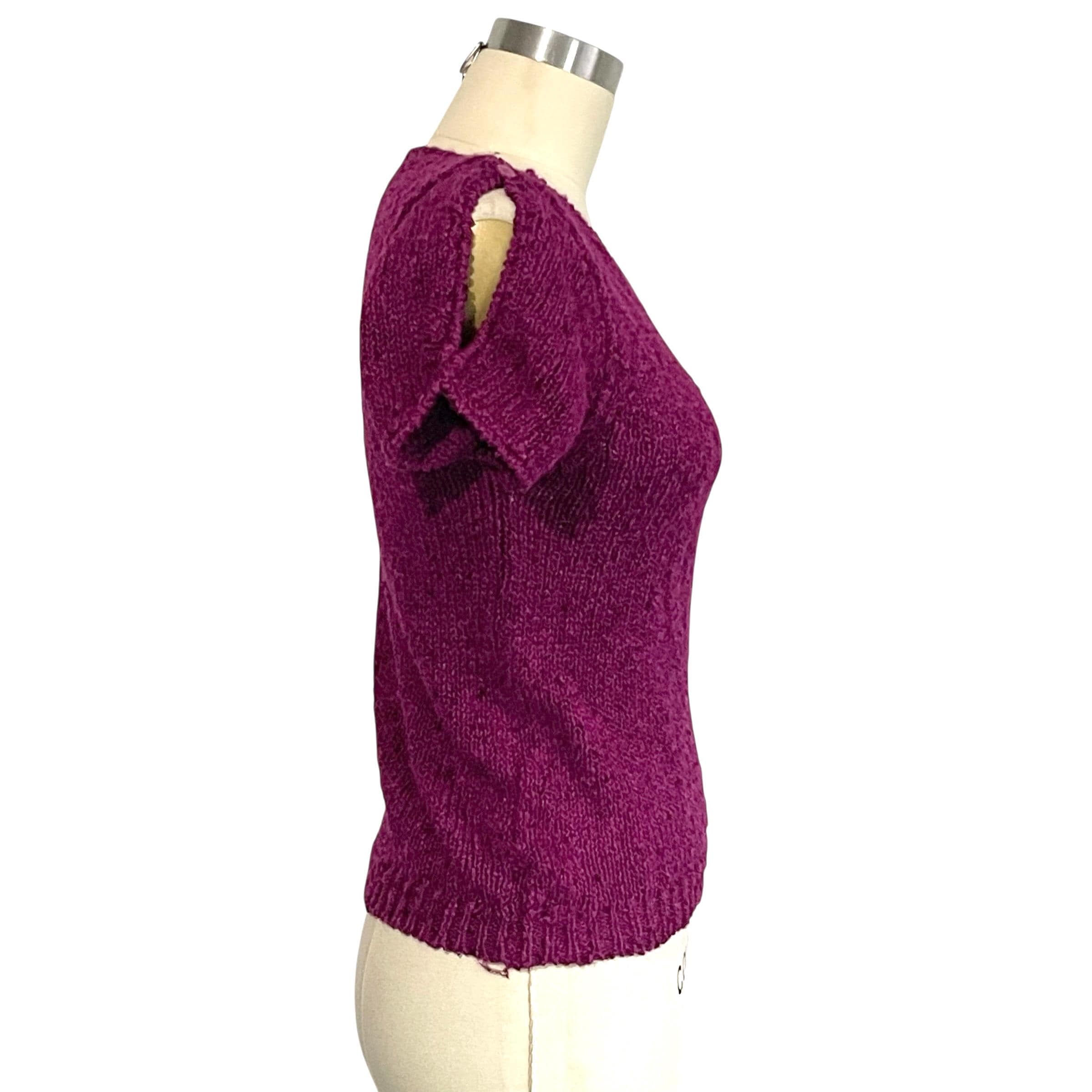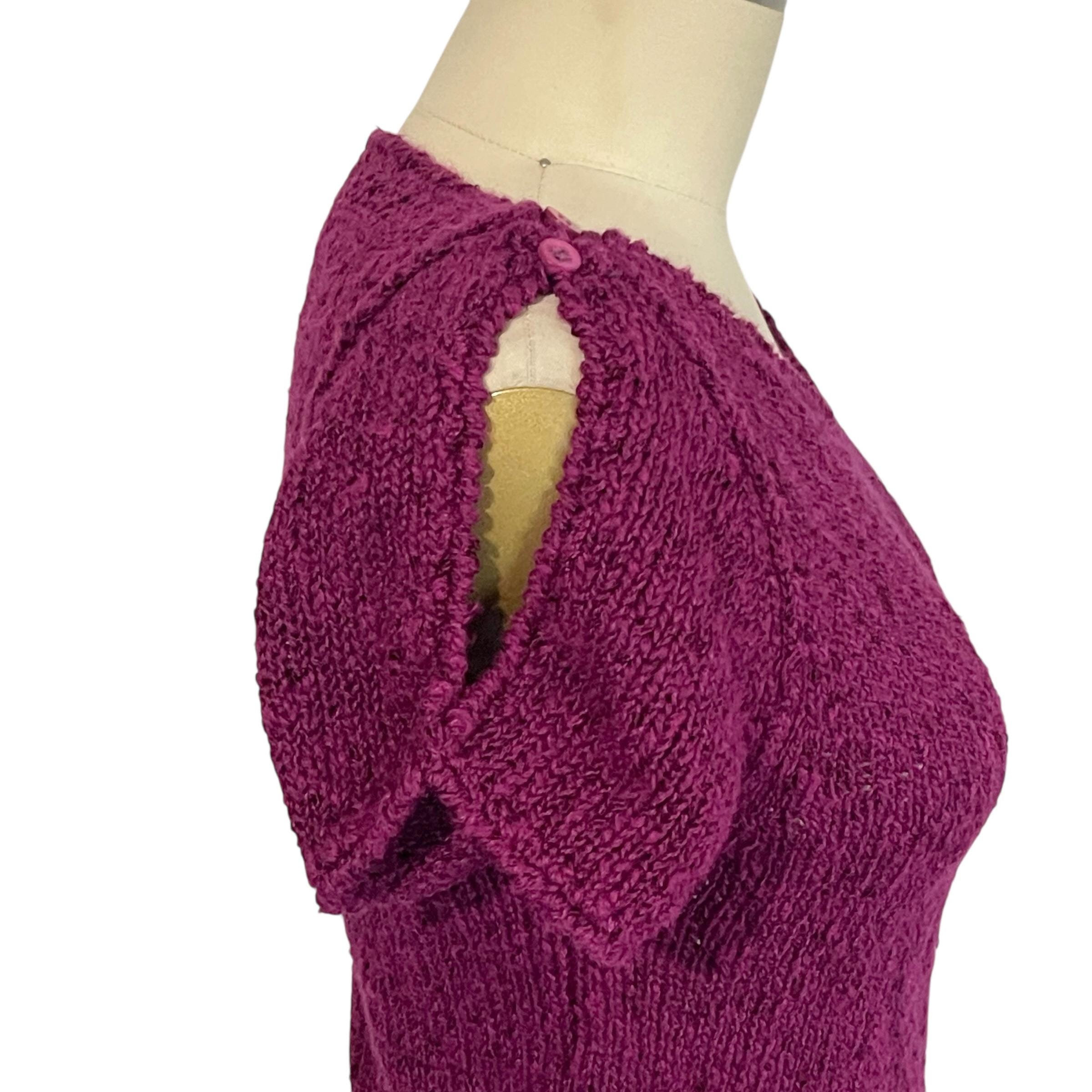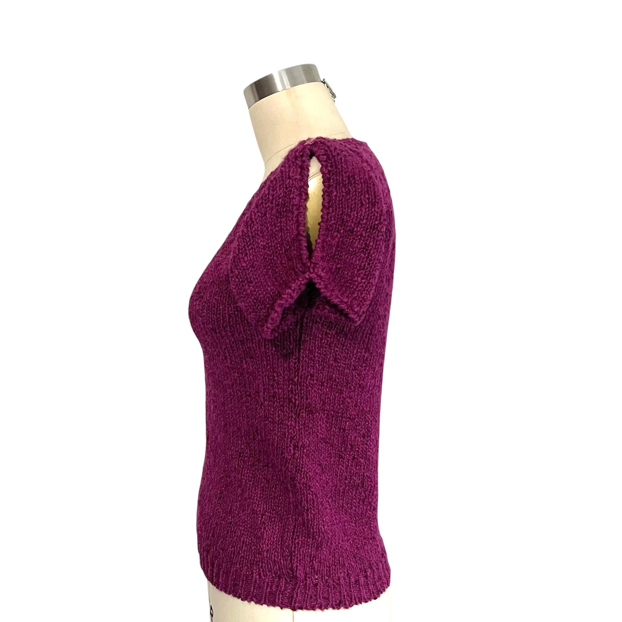 Vintage Boysenberry Split Sleeve Knit Top: Button on Shoulders.